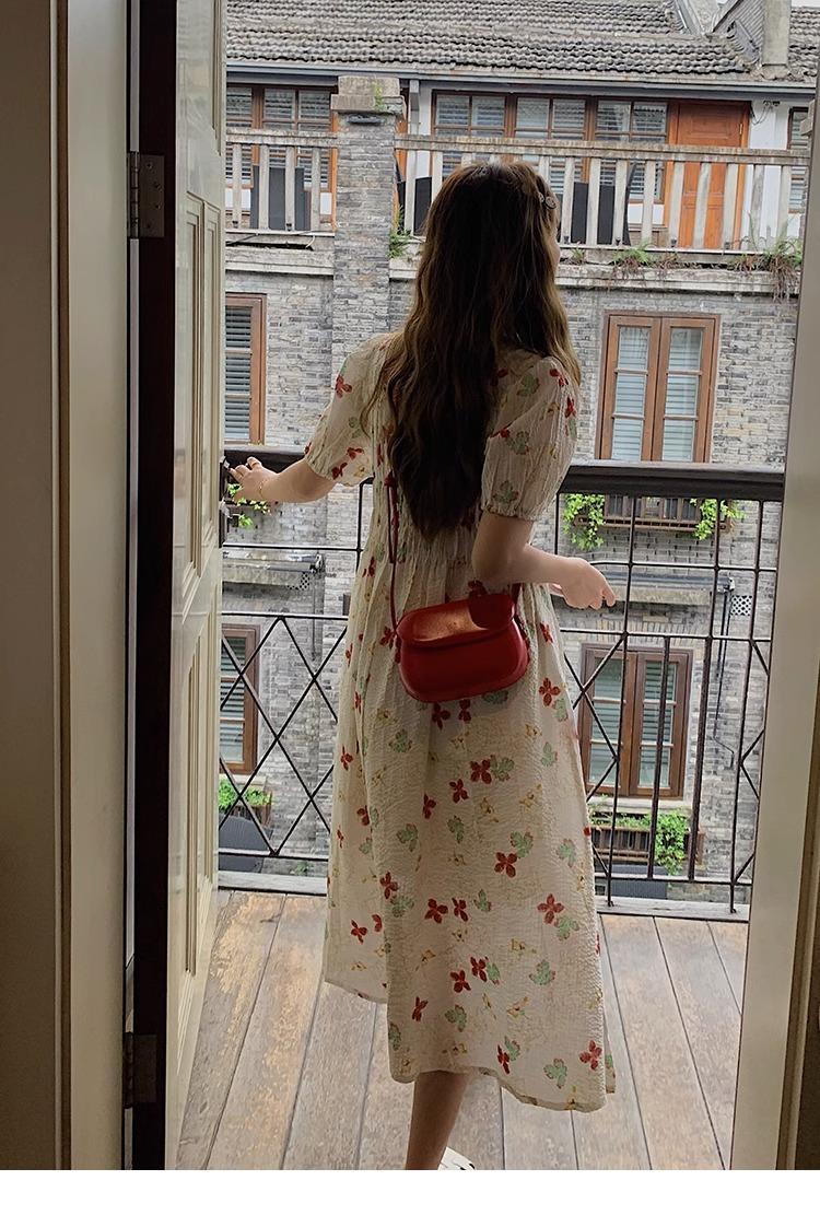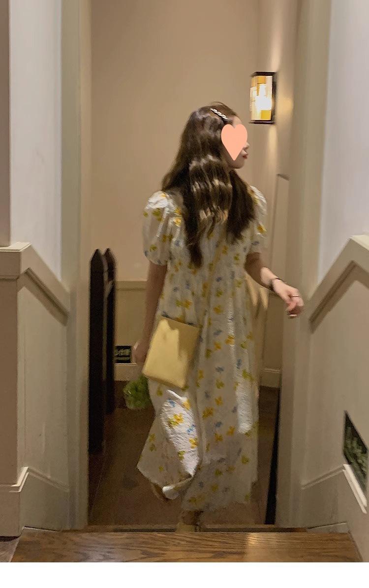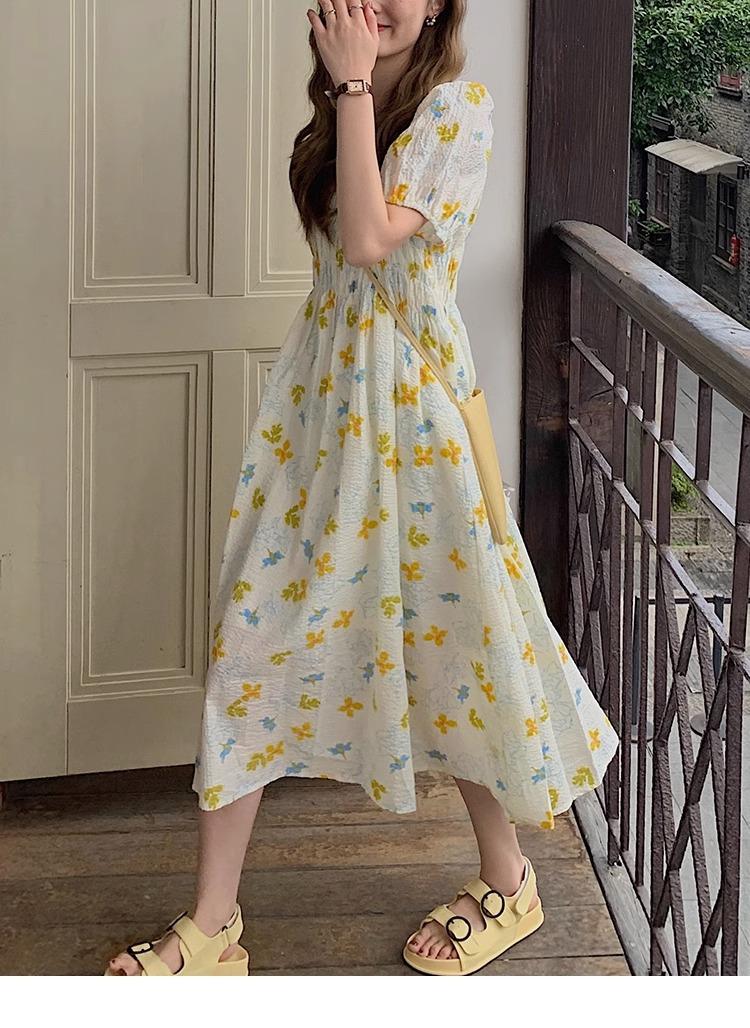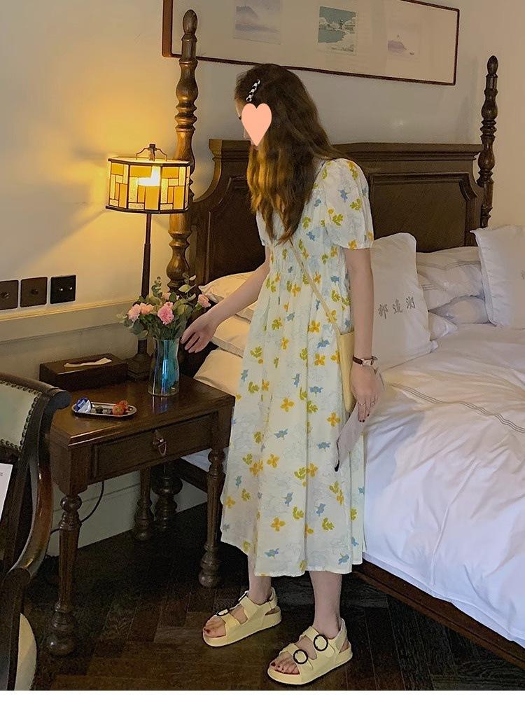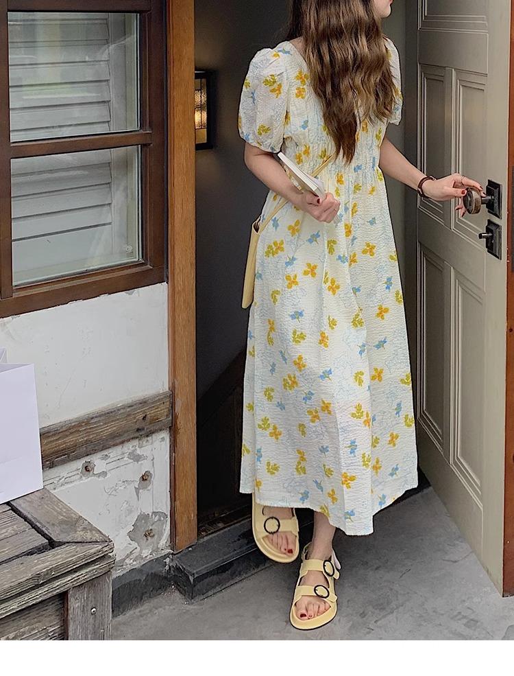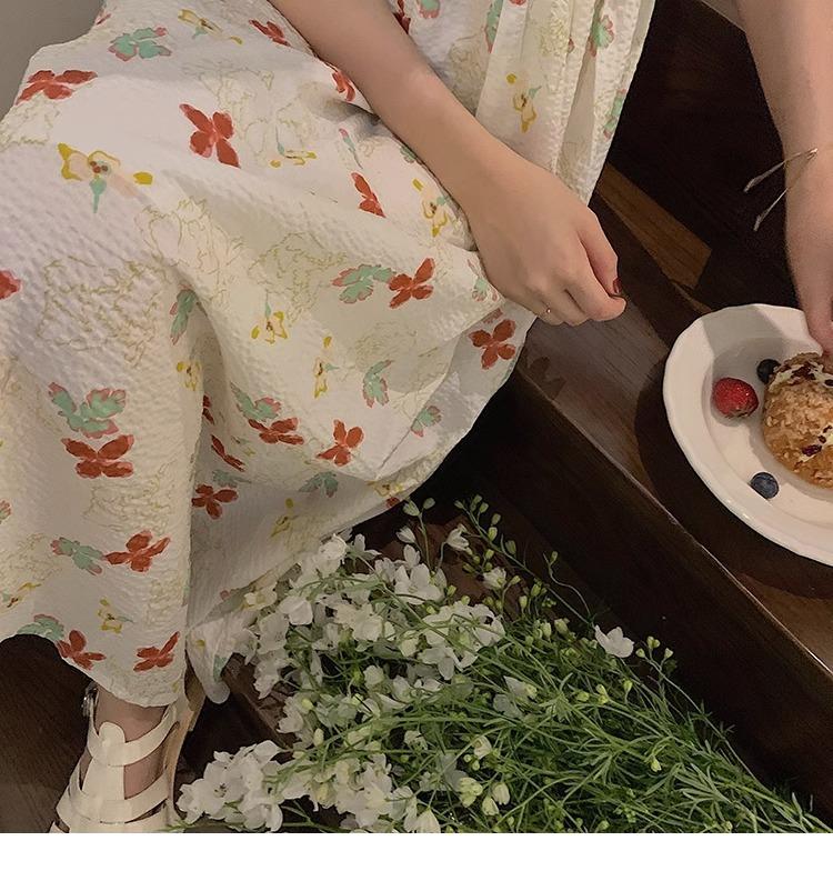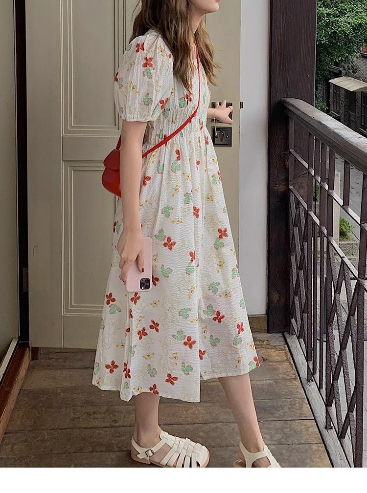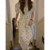2025 Nuevo Estilo de Verano Vestido de Cuello Cuadrado Manga Abullonada Cintura Francesa Falda Floral Pequeña para Niña