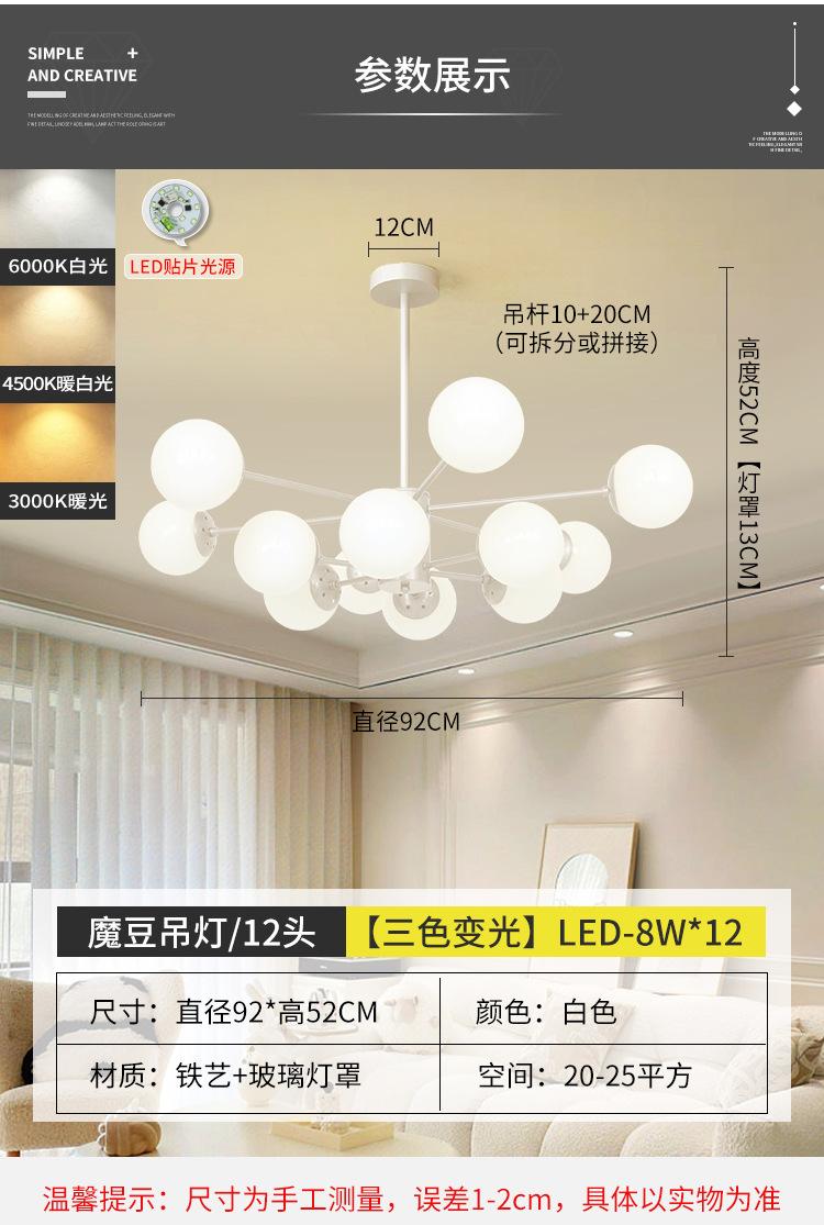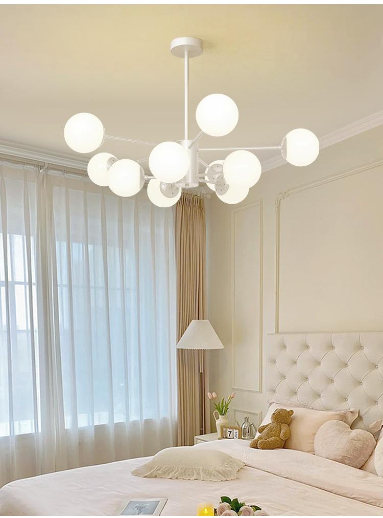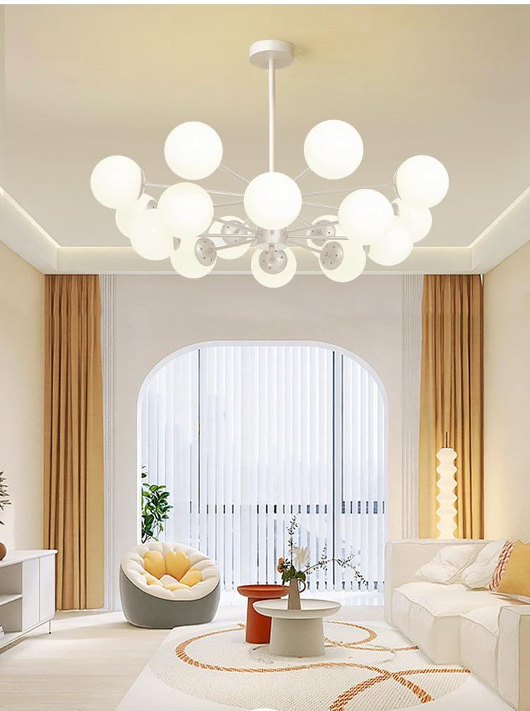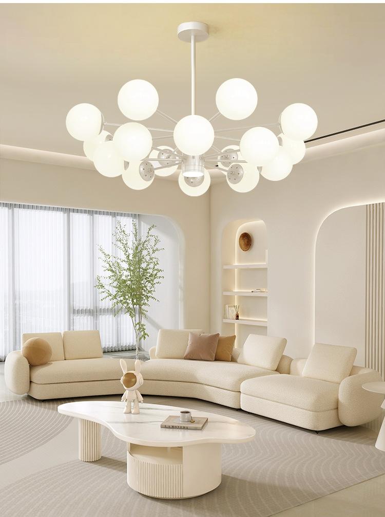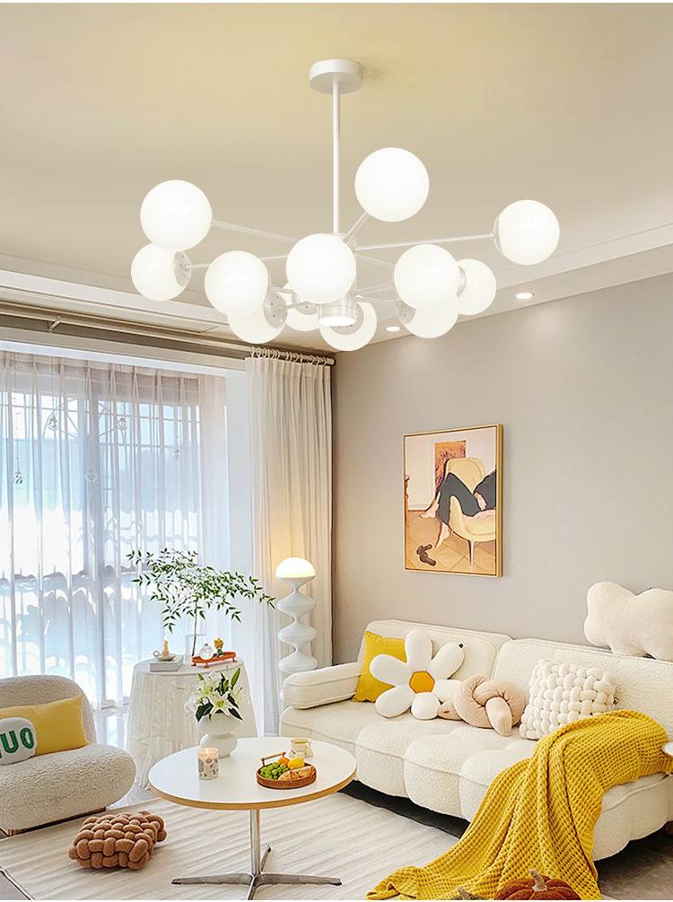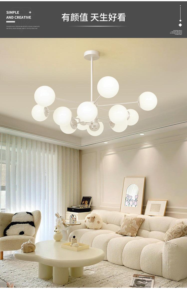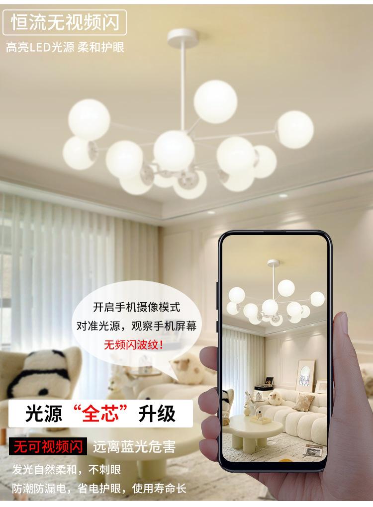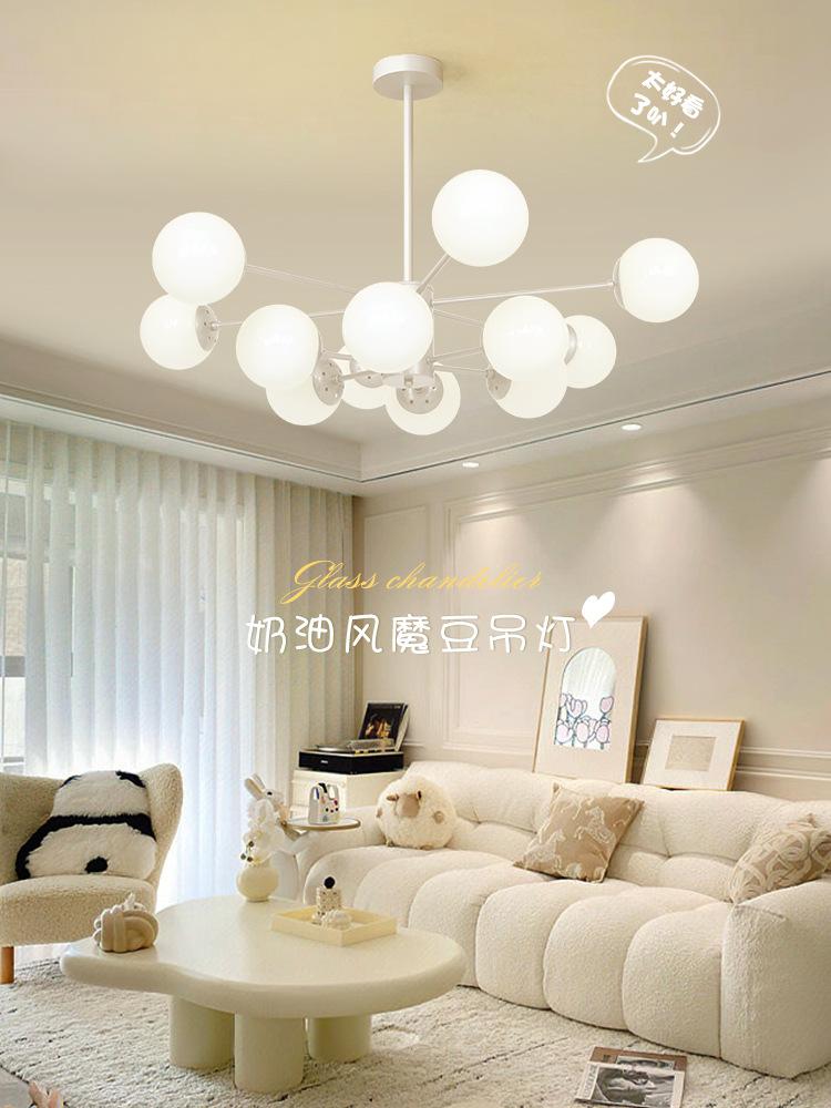 Lámpara de Araña de Sala de Estar Estilo Crema Nórdico Frijol Mágico Nuevo Moderno Simple Atmosférico Lámpara de Dormitorio Principal Molecular Lámpara de Sala de Estar Comedor