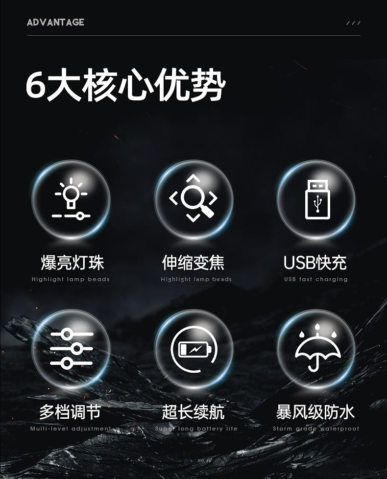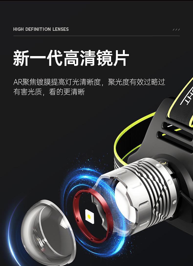 Linterna frontal superbrillante recargable con cabezal transfronterizo, ideal para pesca nocturna al aire libre, iluminación exterior de larga duración.