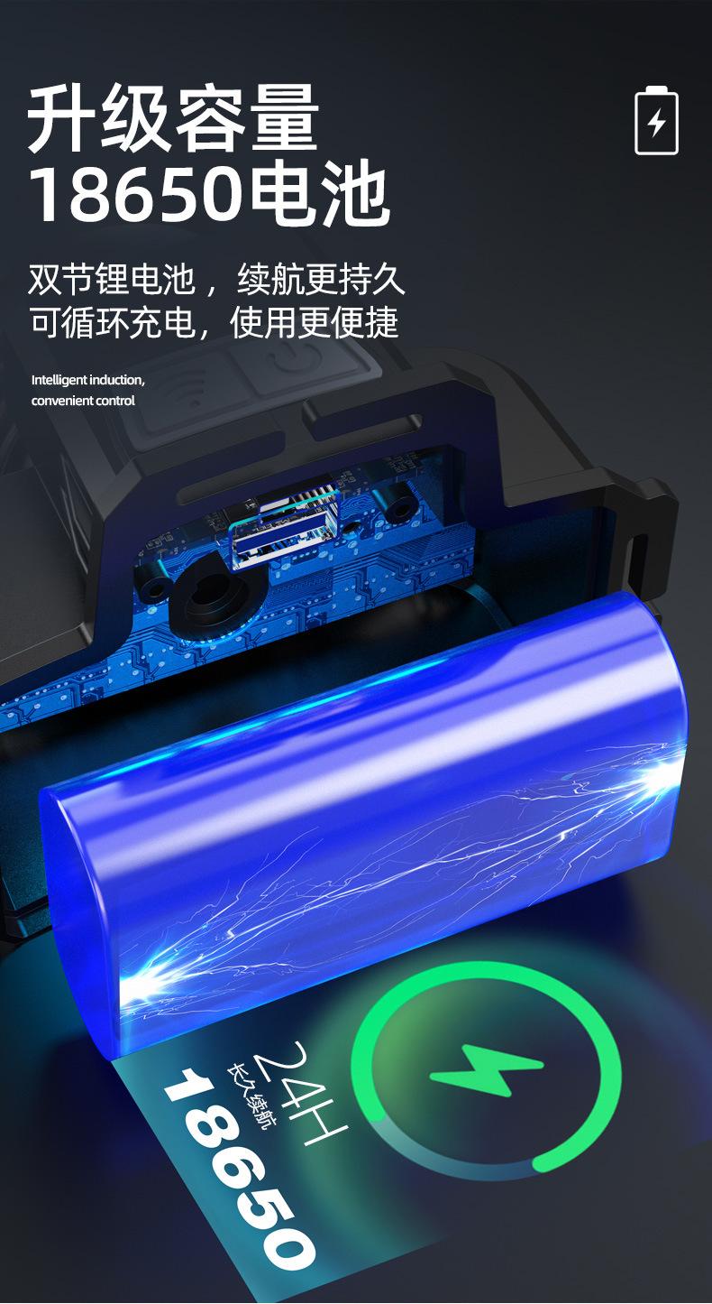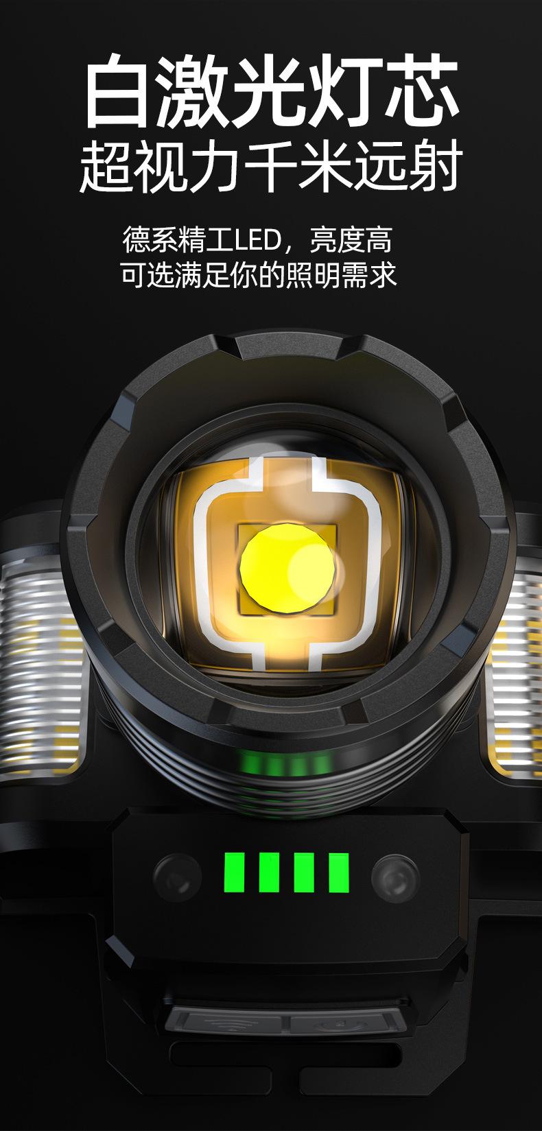 White laser induction headlight + charging line 3600 mA, P50 white light (induction headlight + charging line ...