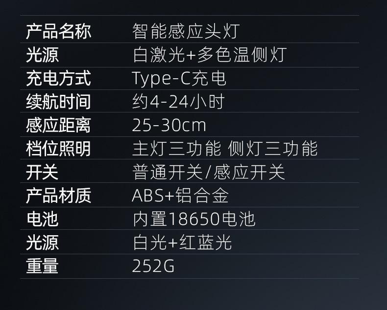 White laser induction headlight + charging line 3600 mA