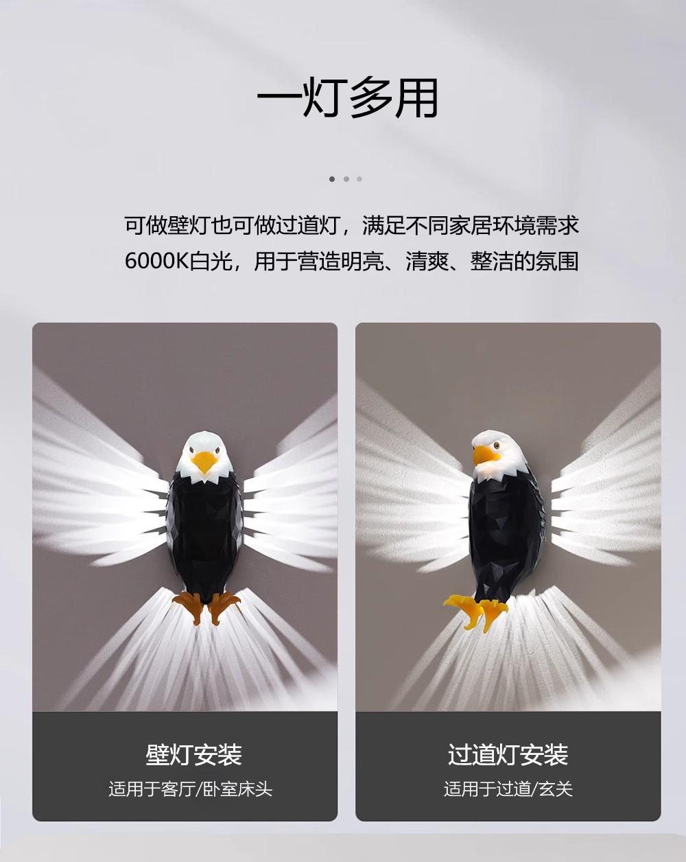 Lámpara de Pared Águila Lámpara de Proyección Dormitorio 2024 Nueva Sin Cableado Control Remoto Carga Magnética Luz Nocturna de Ambiente Creativo