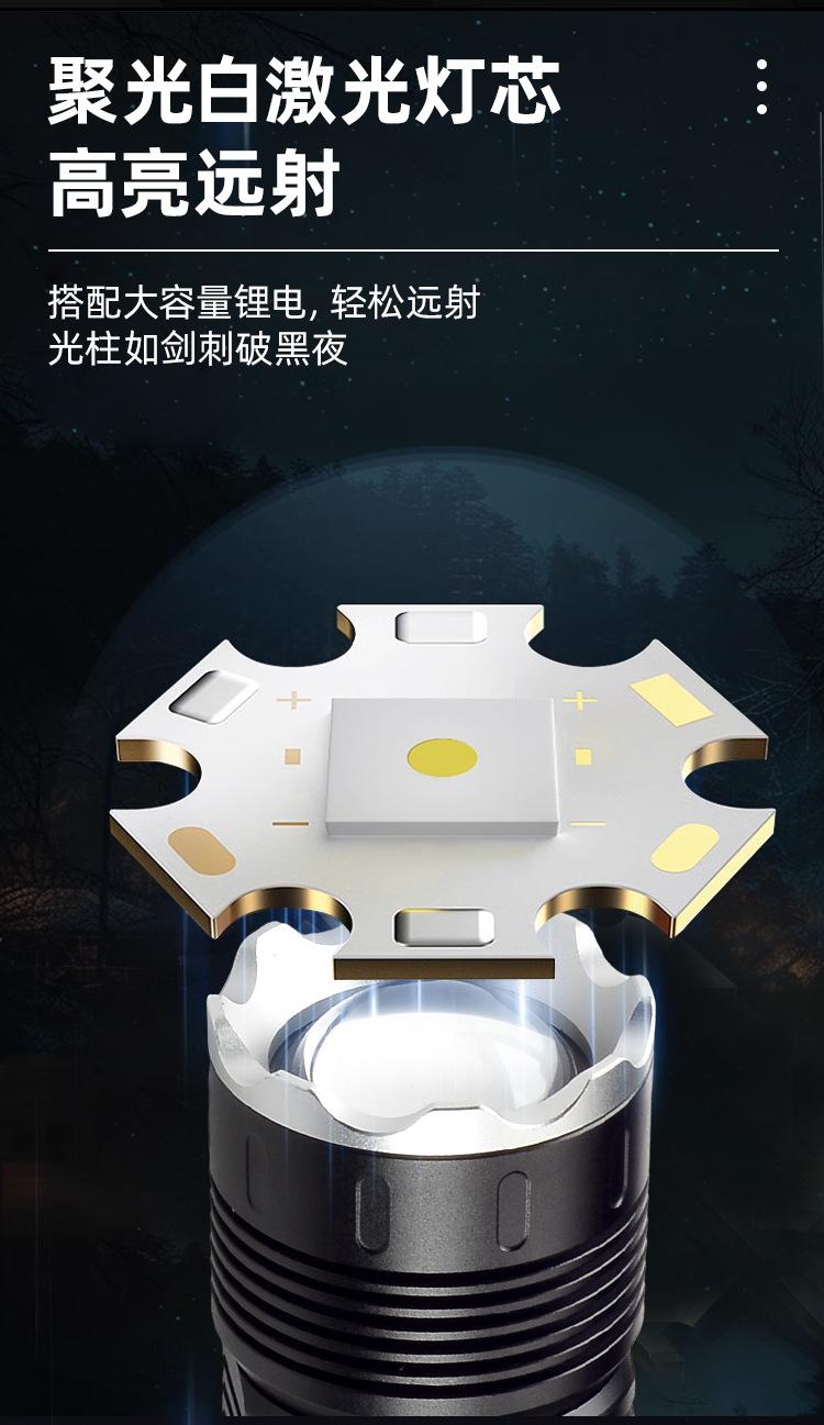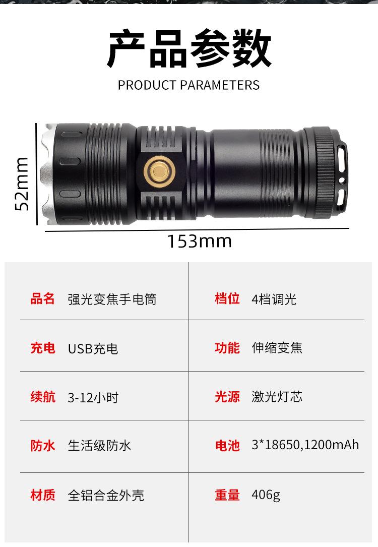 Single flashlight [battery not included] bare lamp white laser, Set [3*18650 battery + USB cable] white laser zoom version