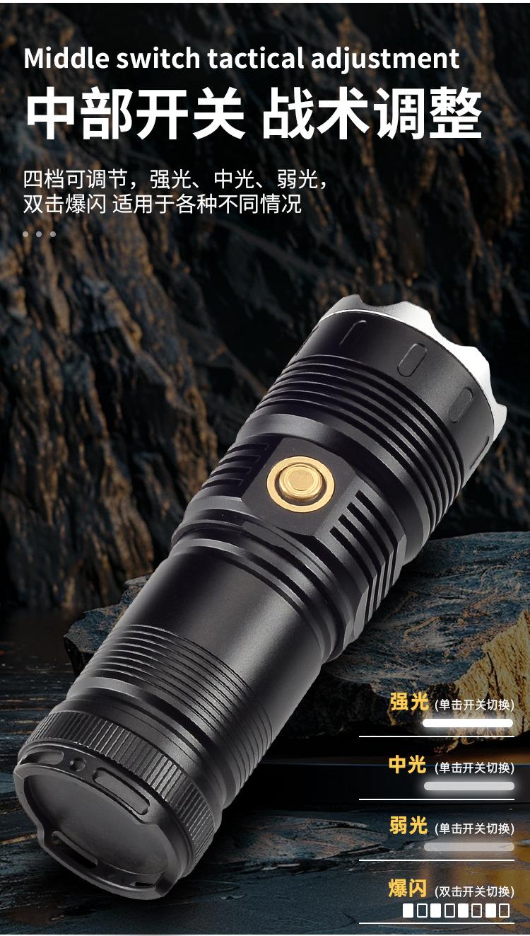 Linterna de Luz Fuerte Recargable para Exteriores de Largo Alcance Portátil Multifuncional Láser Blanco Led Linterna Iluminación de Trabajo Emergencia