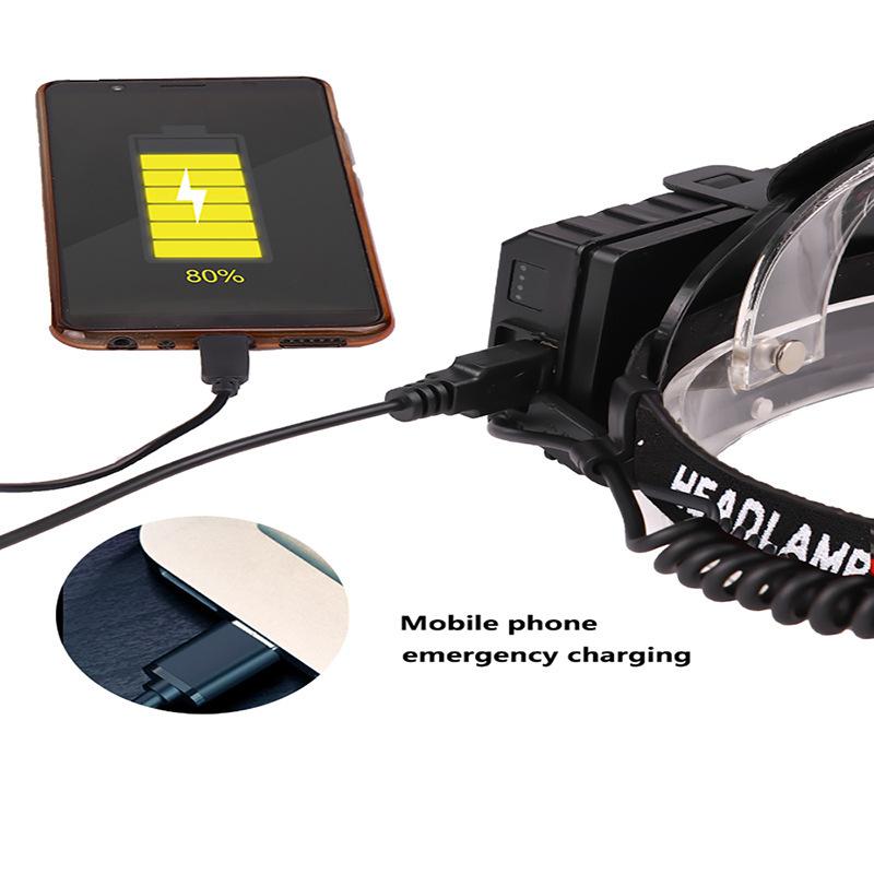 Linterna frontal con zoom telescópico potente y carga USB, ideal para pesca nocturna, faros delanteros P70 para exteriores de larga duración.