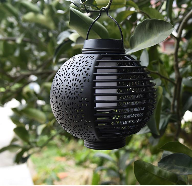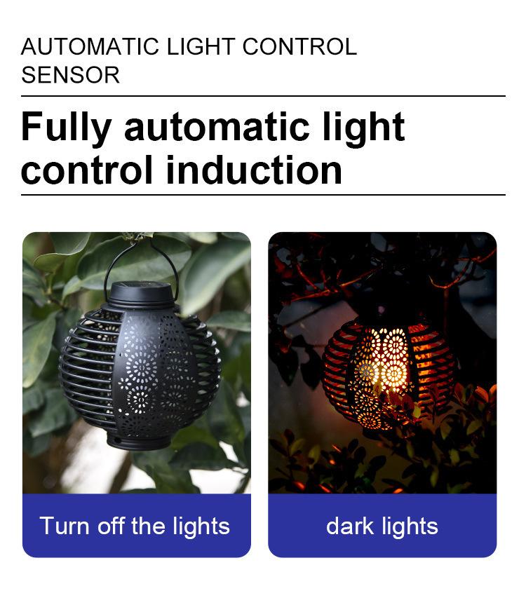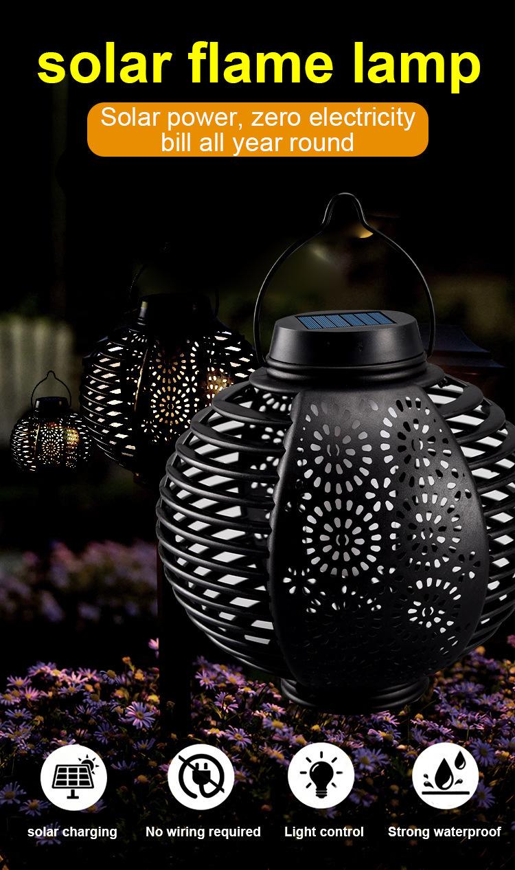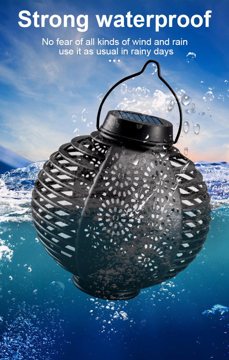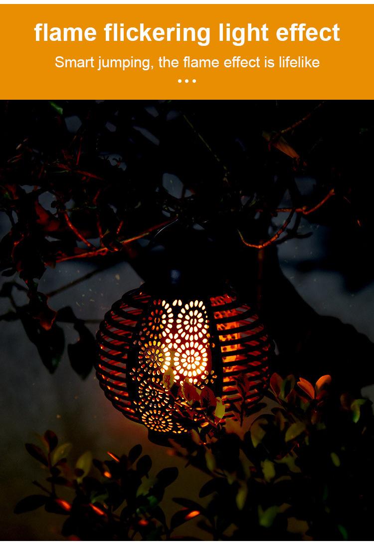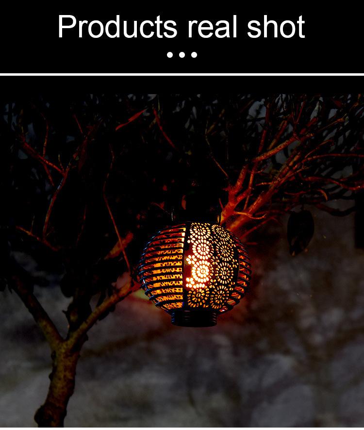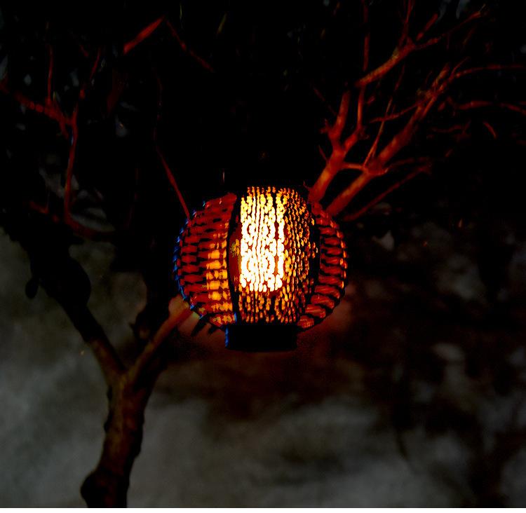 Nuevo Farol Solar de Llama Transfronterizo para Exterior, Farol Redondo de Ratán para Patio, Lámpara de Araña Atmosférica Colgante