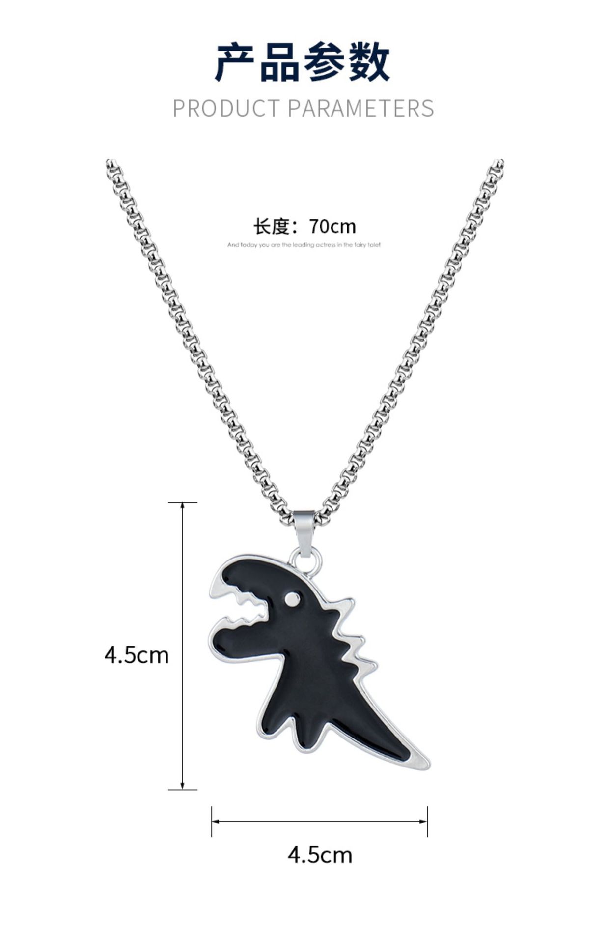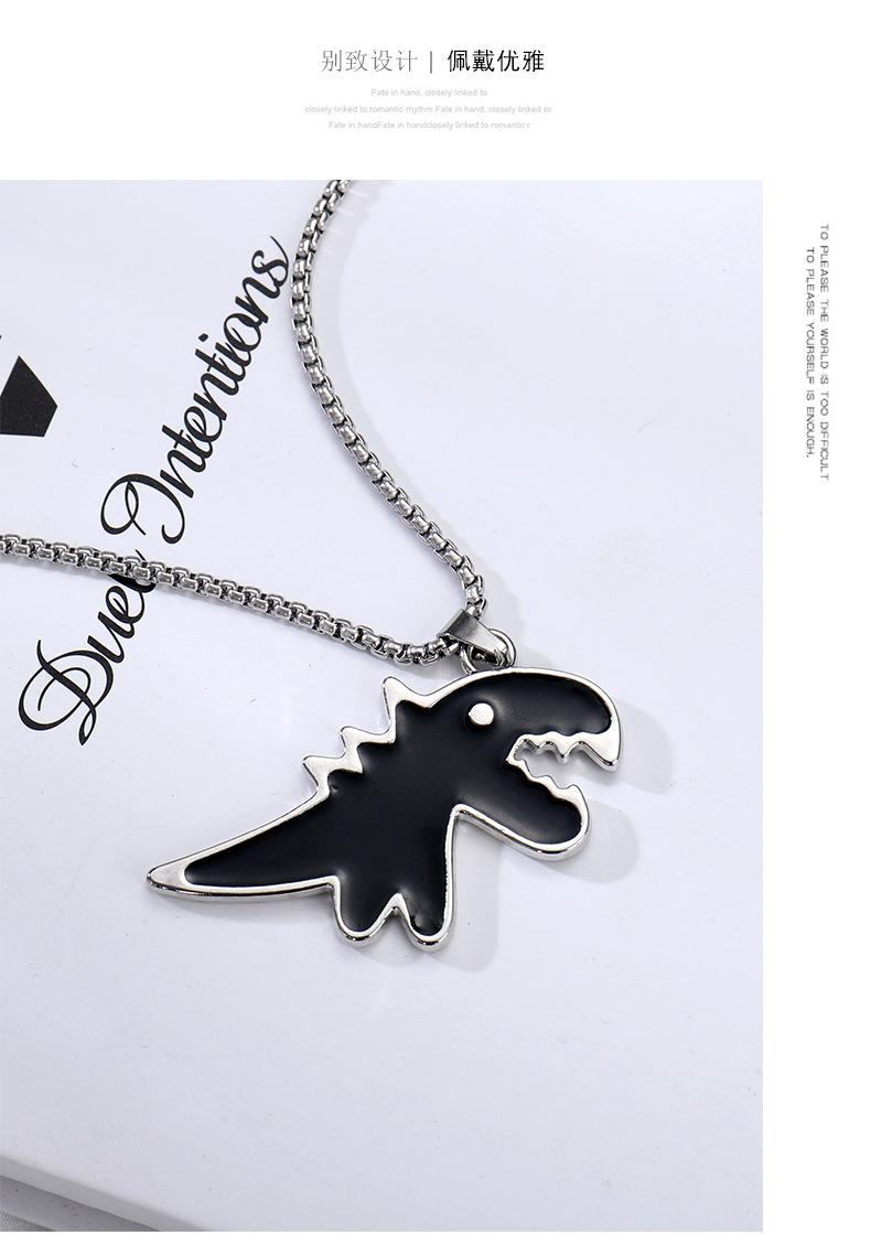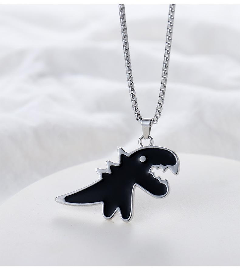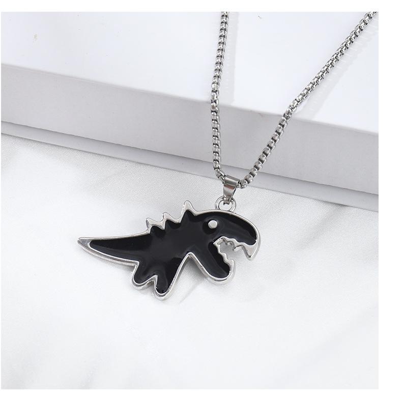 Black dinosaur necklace-titanium steel chain-60cm, Black dinosaur necklace-titanium steel chain-70cm, White di...