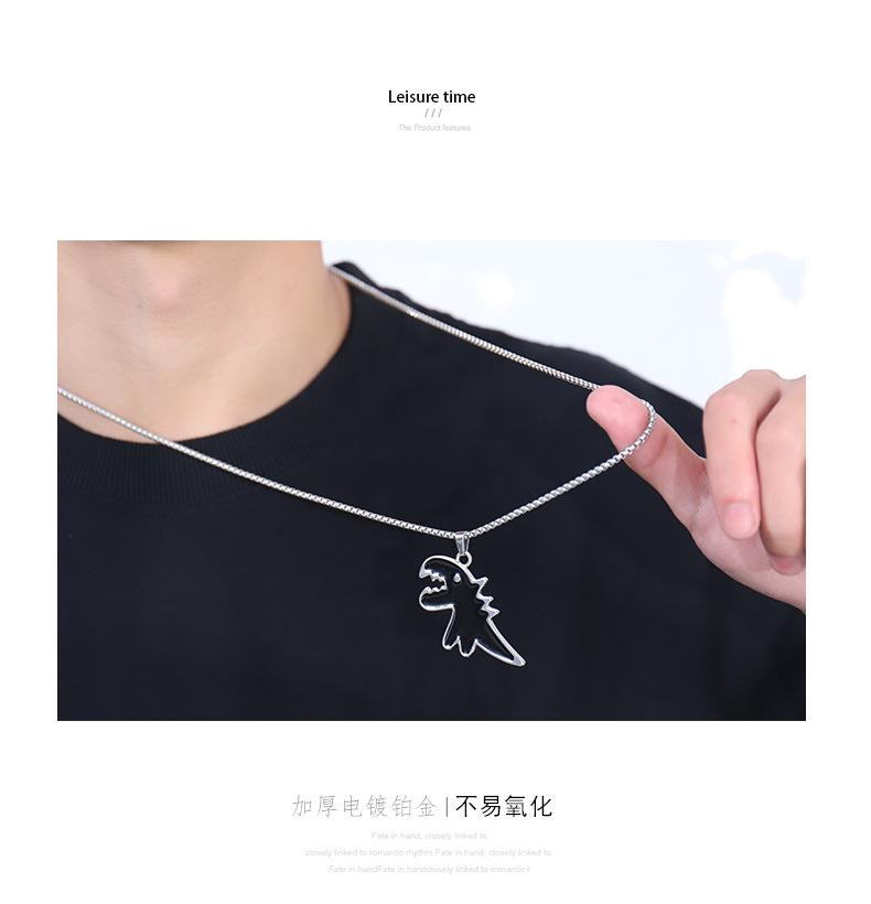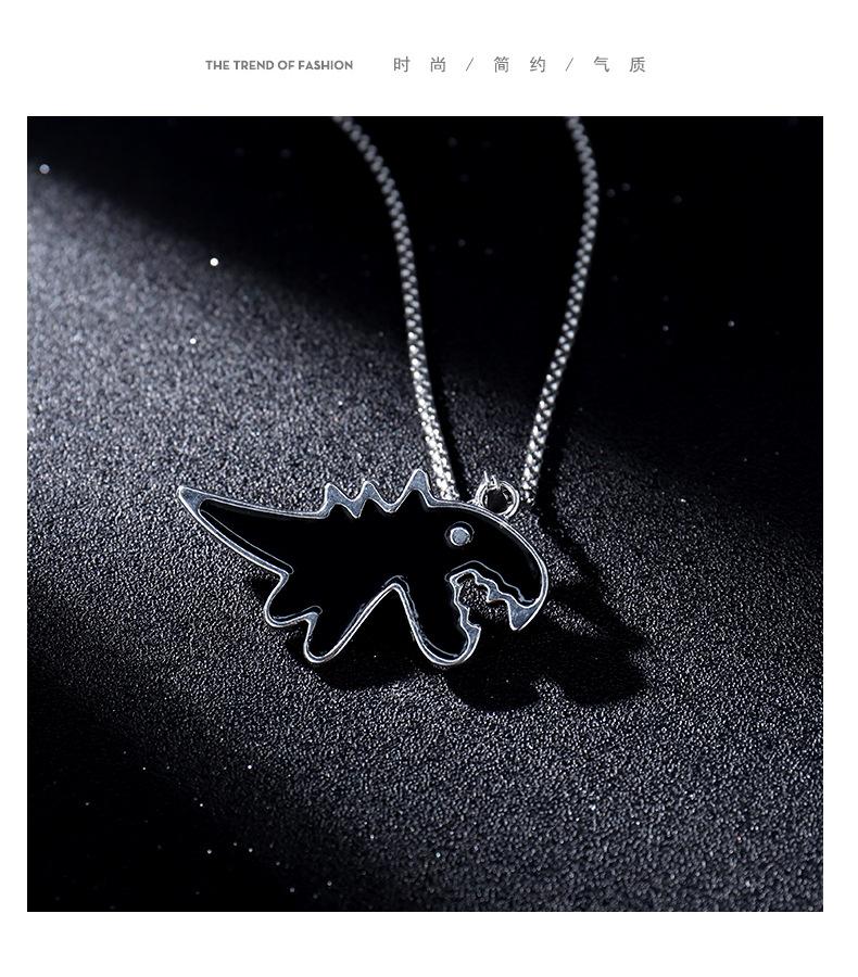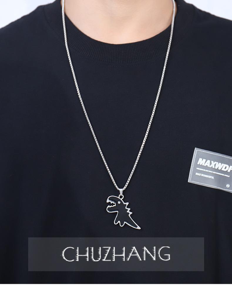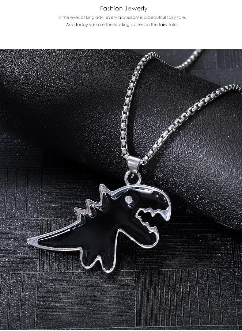 Black dinosaur necklace-titanium steel chain-60cm, Black dinosaur necklace-titanium steel chain-70cm, White di...