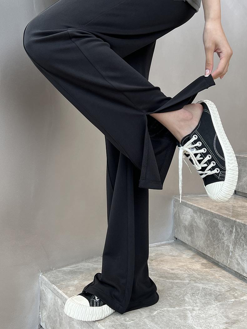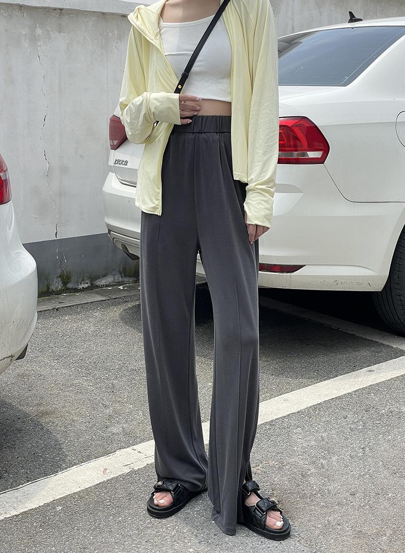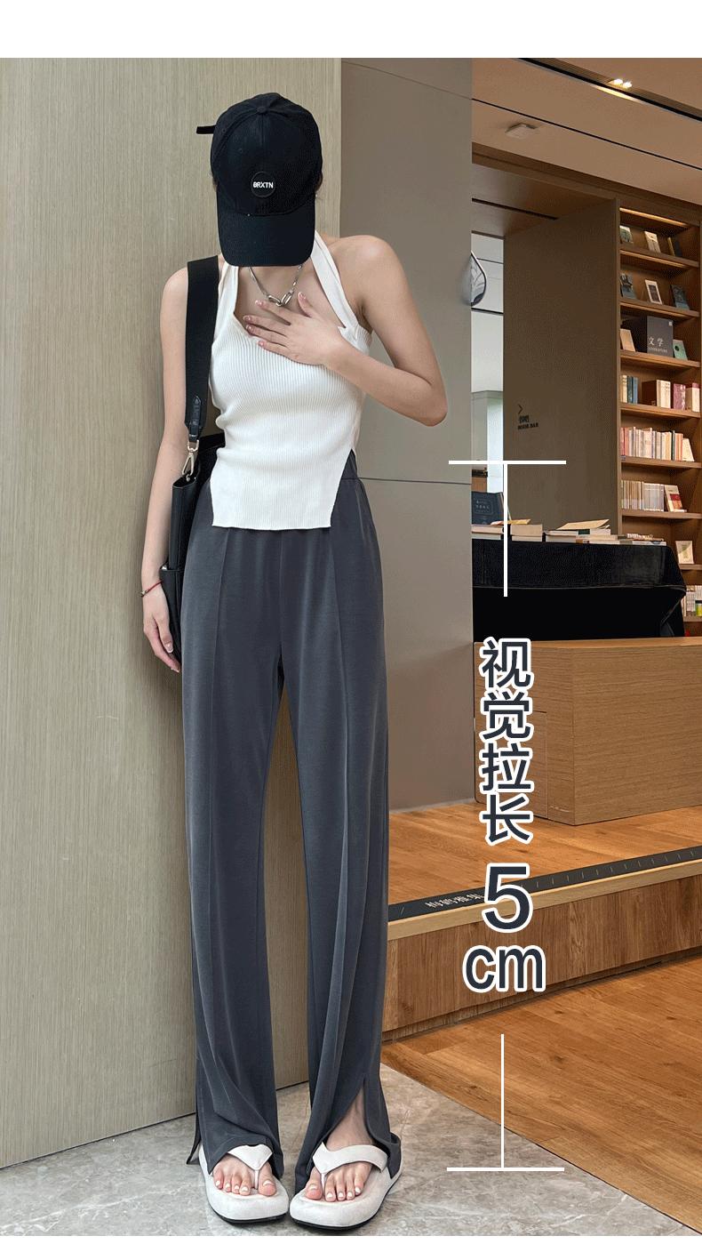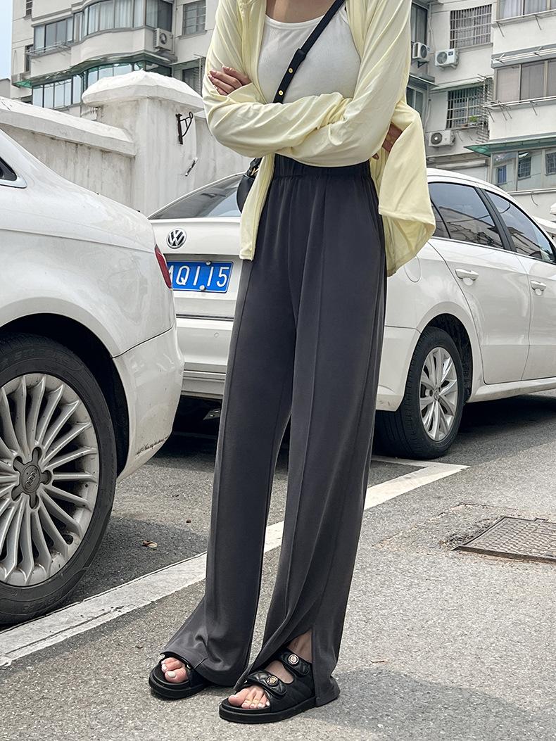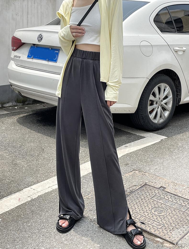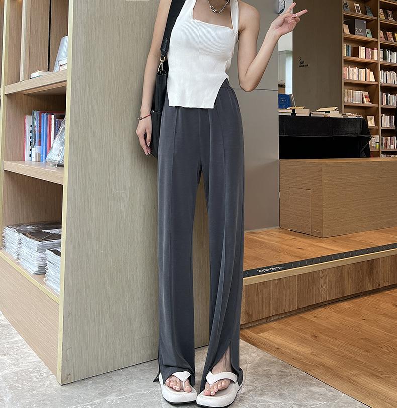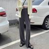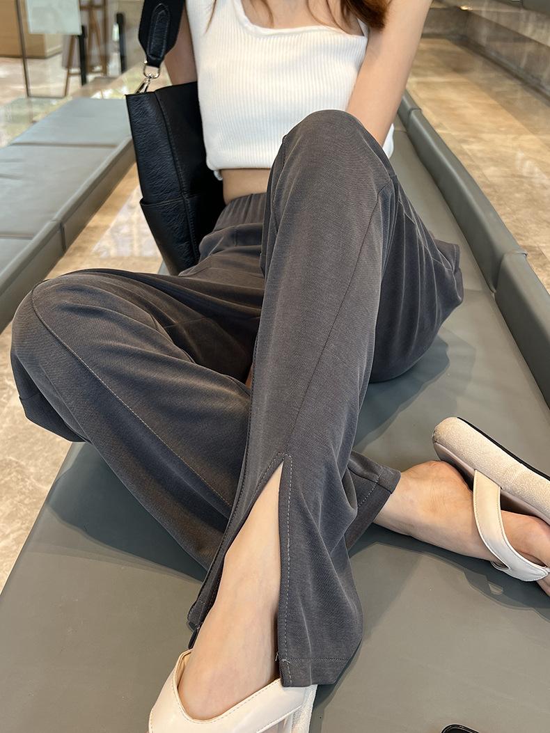 Pantalones grises divididos para mujer, pantalones de otoño estrechos de cintura alta y pierna ancha, pantalones casuales rectos que combinan con todo.