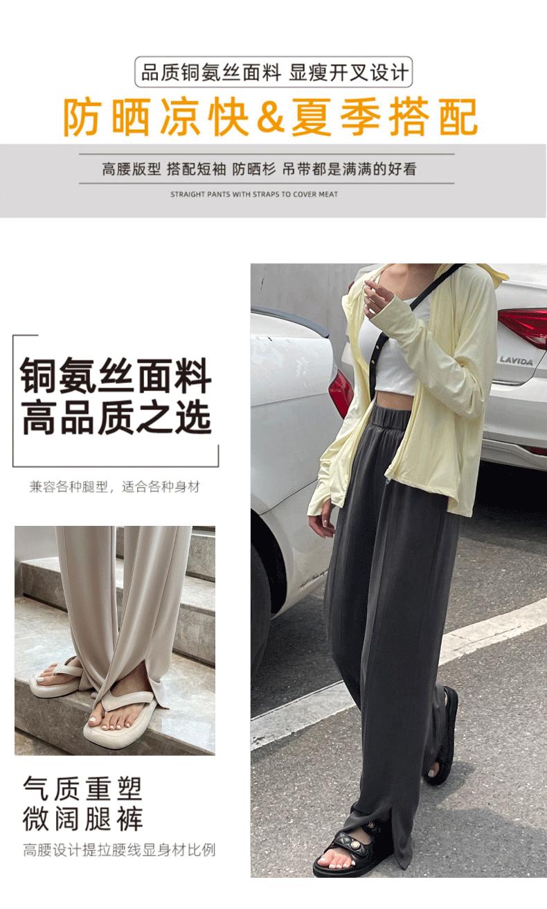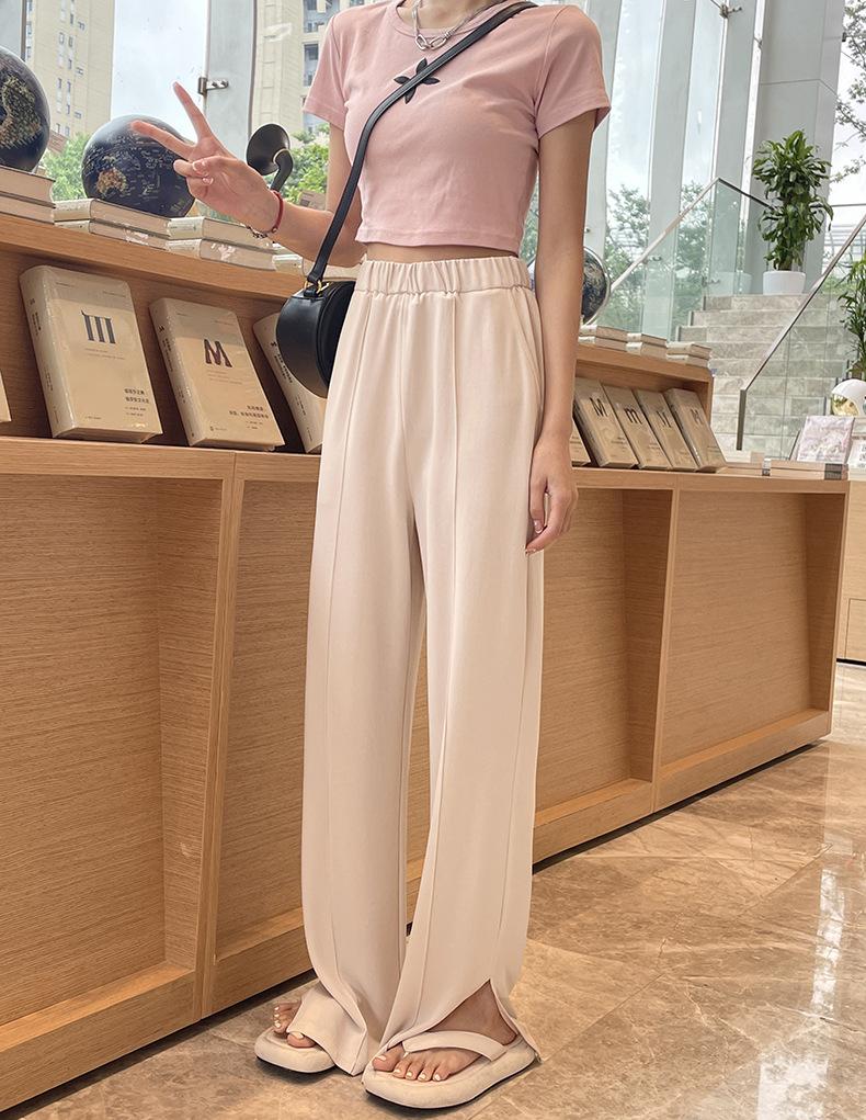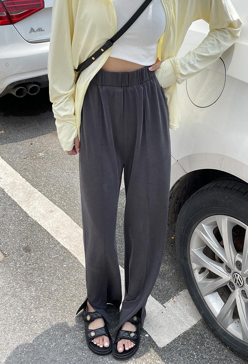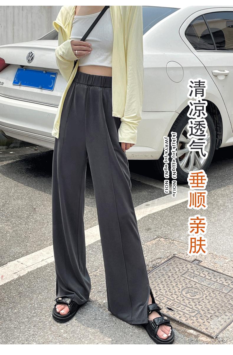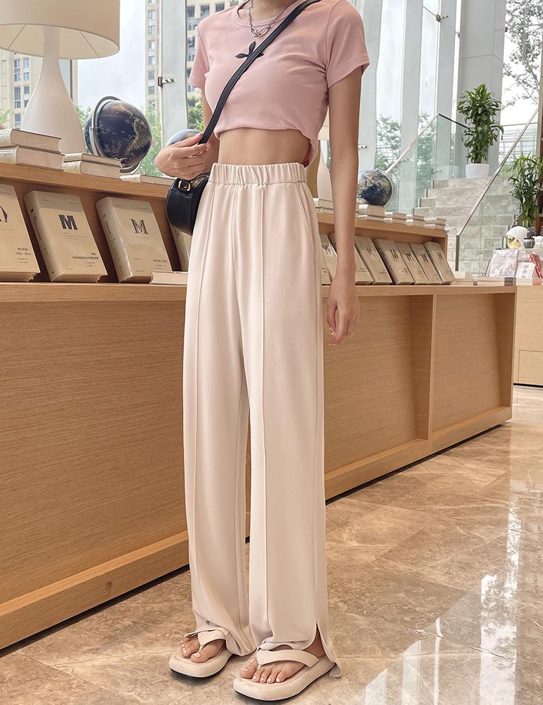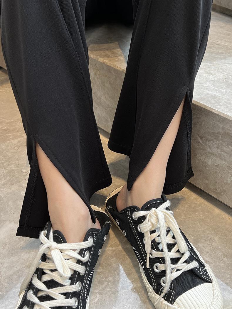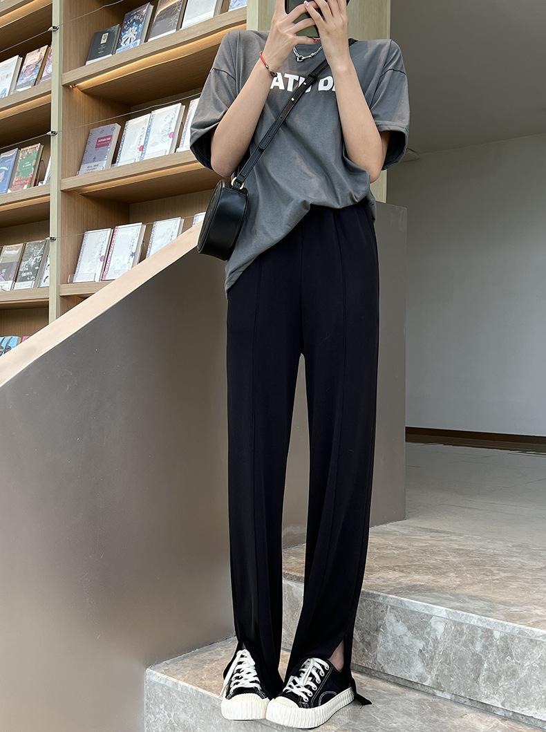Pantalones grises divididos para mujer, pantalones de otoño estrechos de cintura alta y pierna ancha, pantalones casuales rectos que combinan con todo.