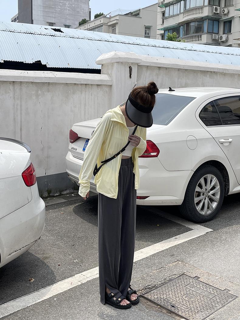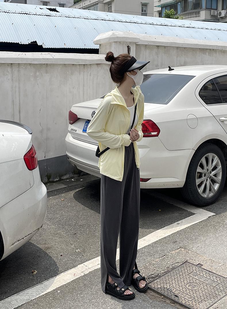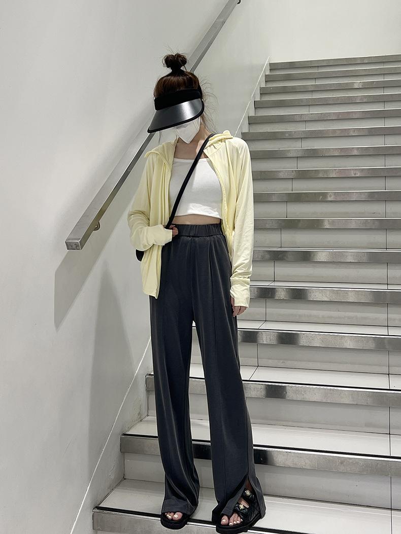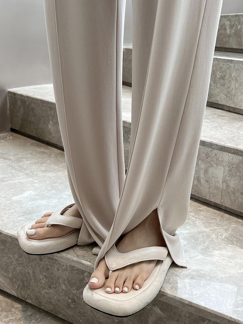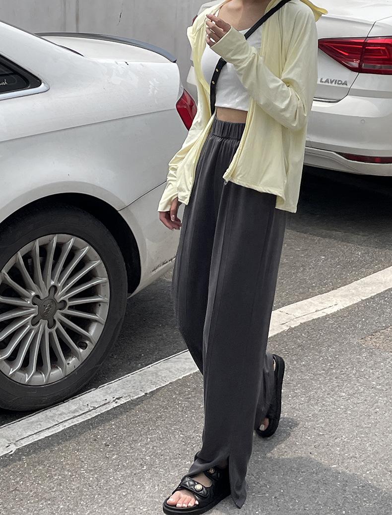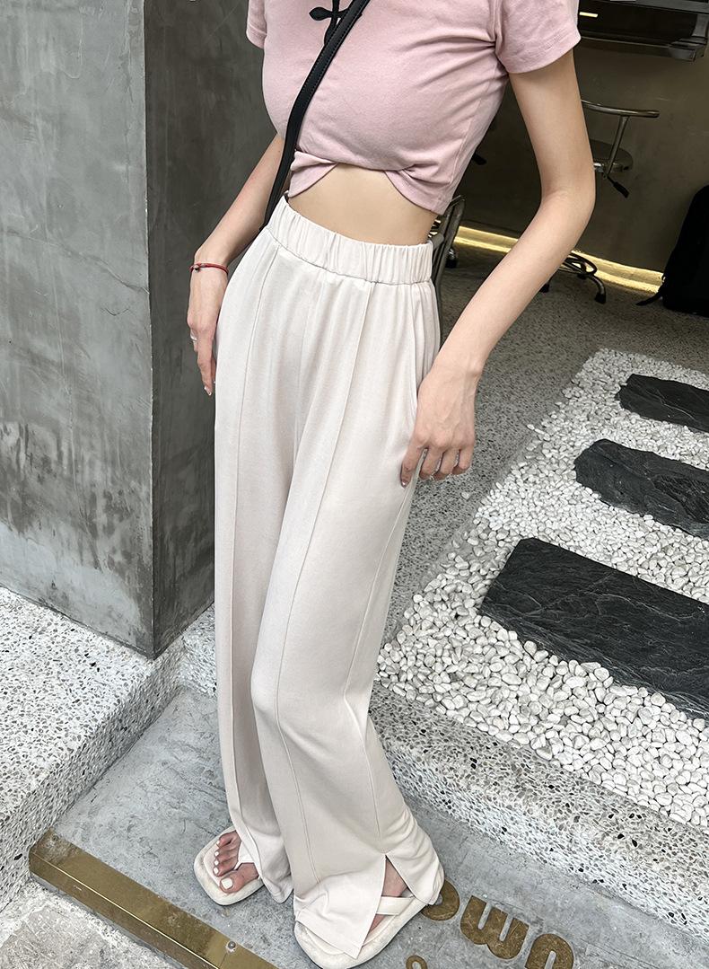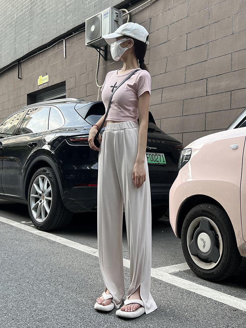 Pantalones grises divididos para mujer, pantalones de otoño estrechos de cintura alta y pierna ancha, pantalones casuales rectos que combinan con todo.