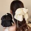Horquilla de cola de caballo baja con lazo de perla de satén retro, pinza de resorte para la parte posterior, horquilla para el cabello con lazo medio, accesorios para el cabello con temperamento