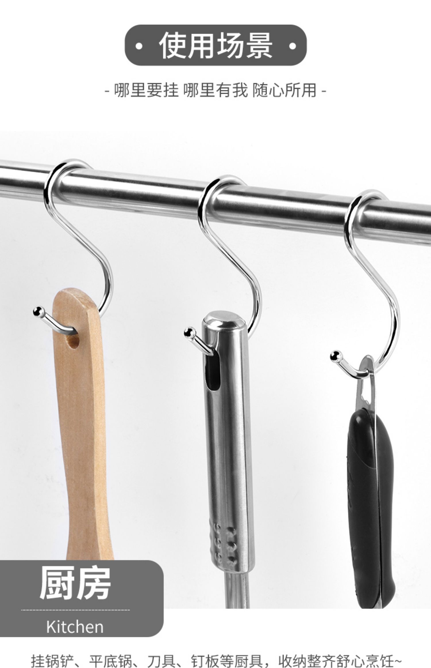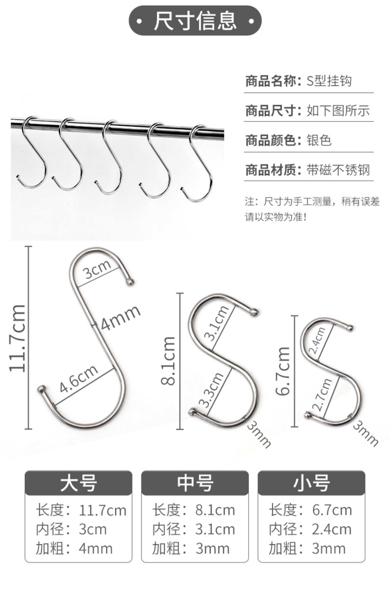 Gancho en S de Acero Inoxidable para Cocina Gancho en S de Metal Gancho de Hierro Doméstico Estante de Almacenamiento Gancho Individual para Dormitorio Tamaño
