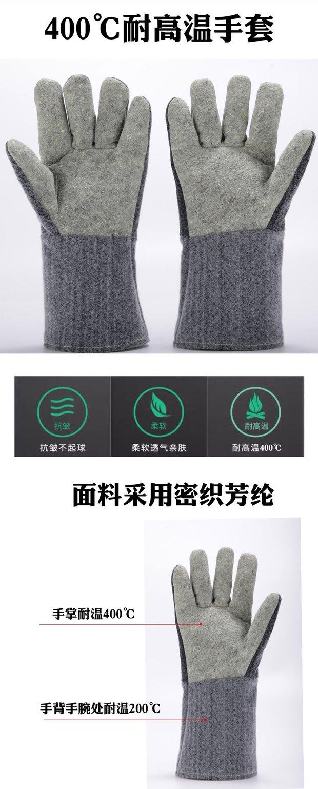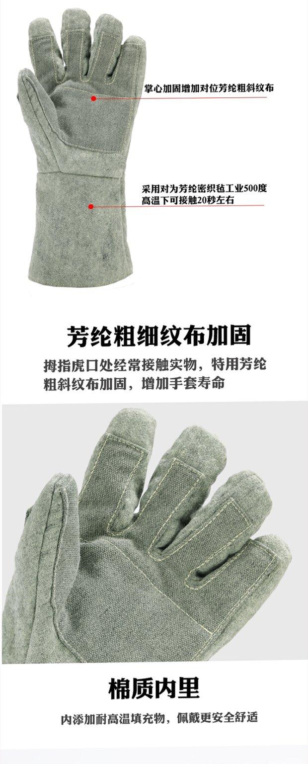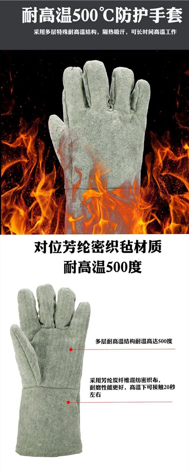 Guantes de cinco dedos resistentes al desgaste, engrosados, de alta temperatura, industriales, anti-escaldaduras, con aislamiento térmico y anti-altas temperaturas, ignífugos y resistentes a la intemperie, de 300 a 500 grados.