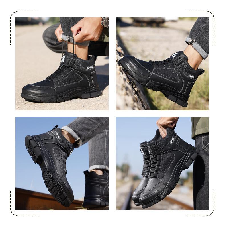 Nuevos zapatos de protección laboral de caña alta transfronterizos, resistentes al desgaste, antiaplastamiento y antiperforación, con punta de acero para hombres, zapatos de seguridad para trabajos de construcción.