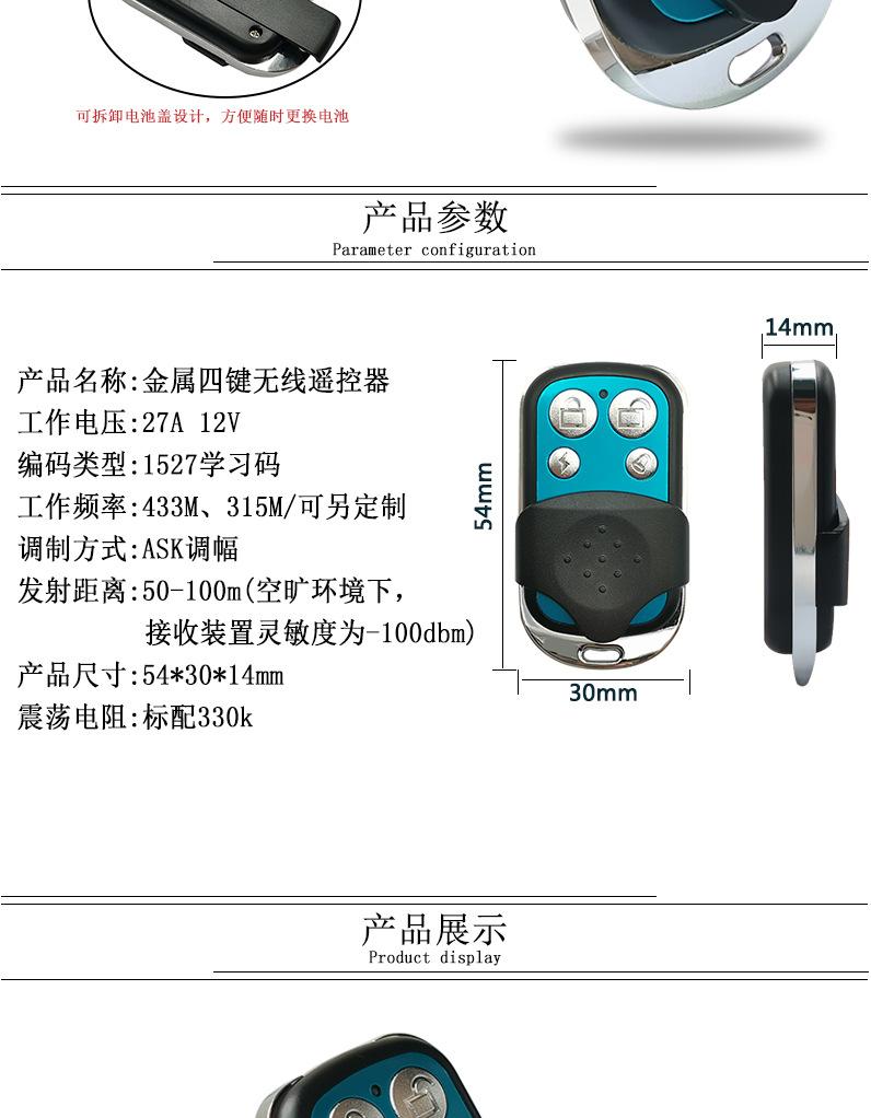 Control Remoto Inalámbrico para Puerta de Garaje Eléctrica Inteligente Metal Cuatro Botones Alarma de Seguridad Control de Acceso 433 Copiar Control Remoto