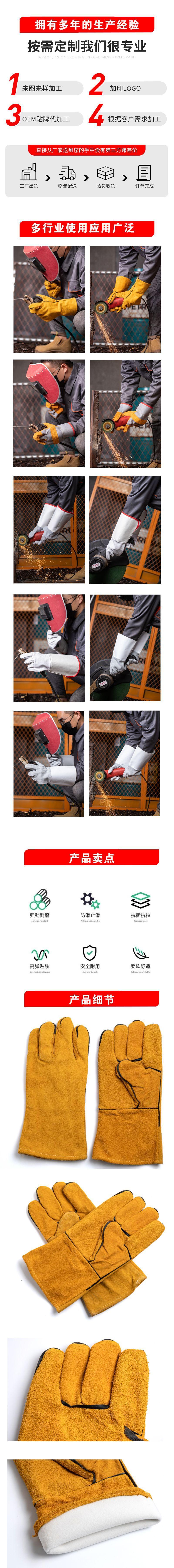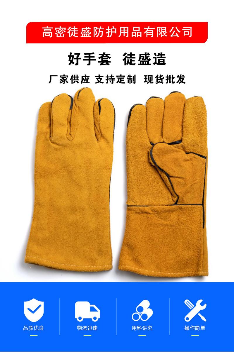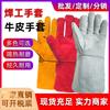 Guantes de soldadura de piel de vaca amarilla, resistentes al desgaste, ignífugos, con flores, engrosados y resistentes al desgaste.