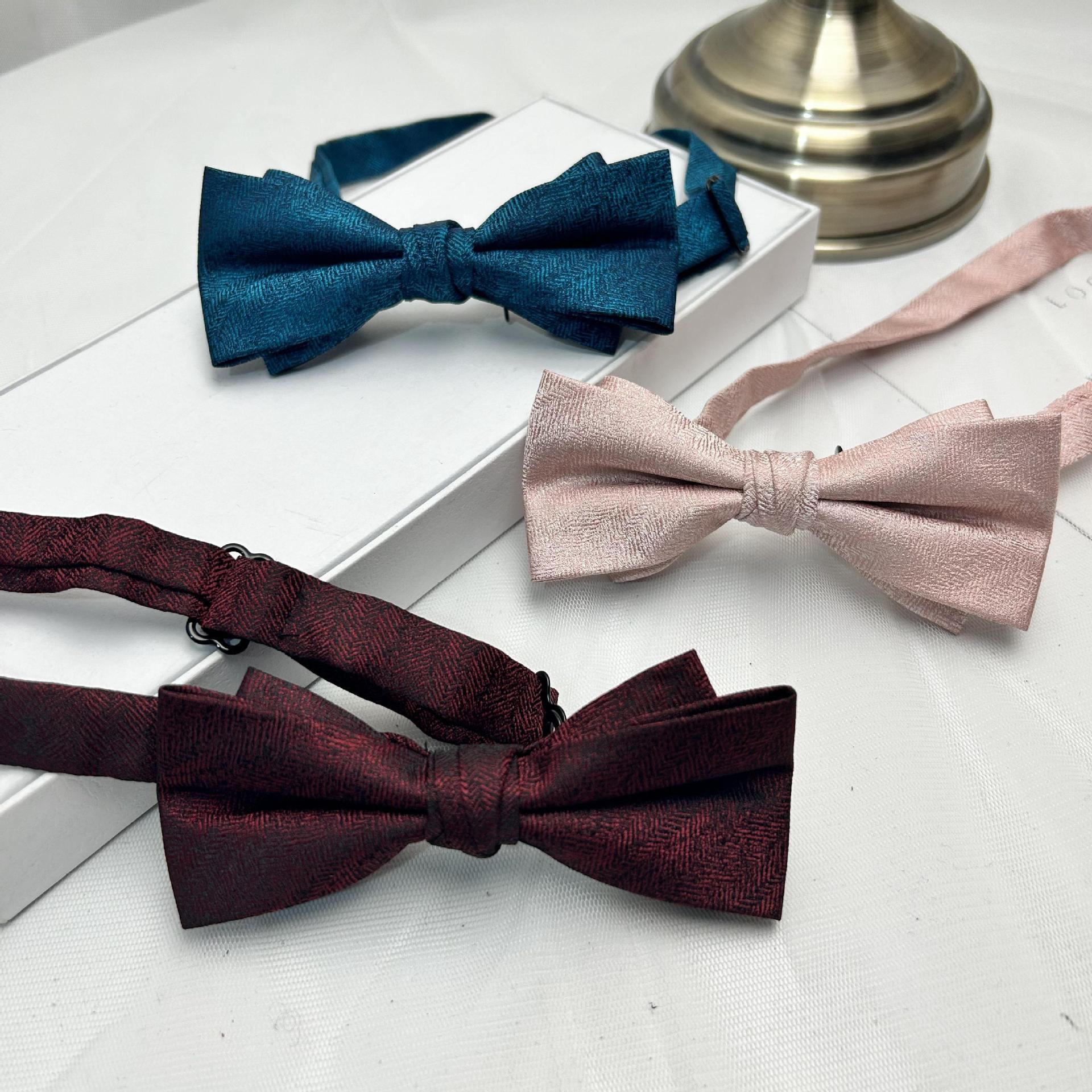 Pajarita de hombre con estampado oscuro de color liso, estilo coreano, informal, combinable con todo, de doble capa, para mujer, color negro, vino tinto y azul.
