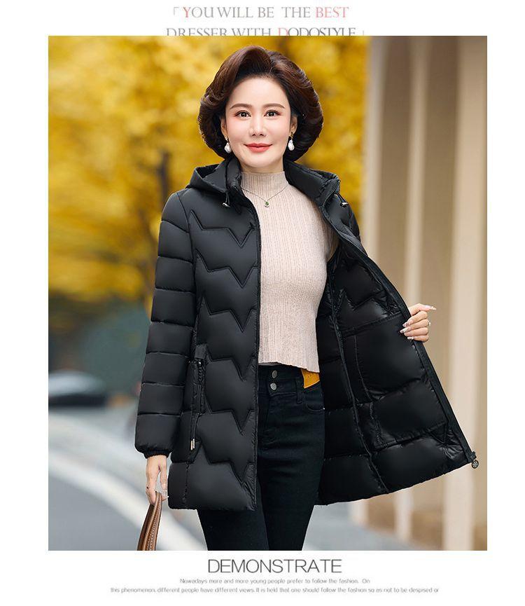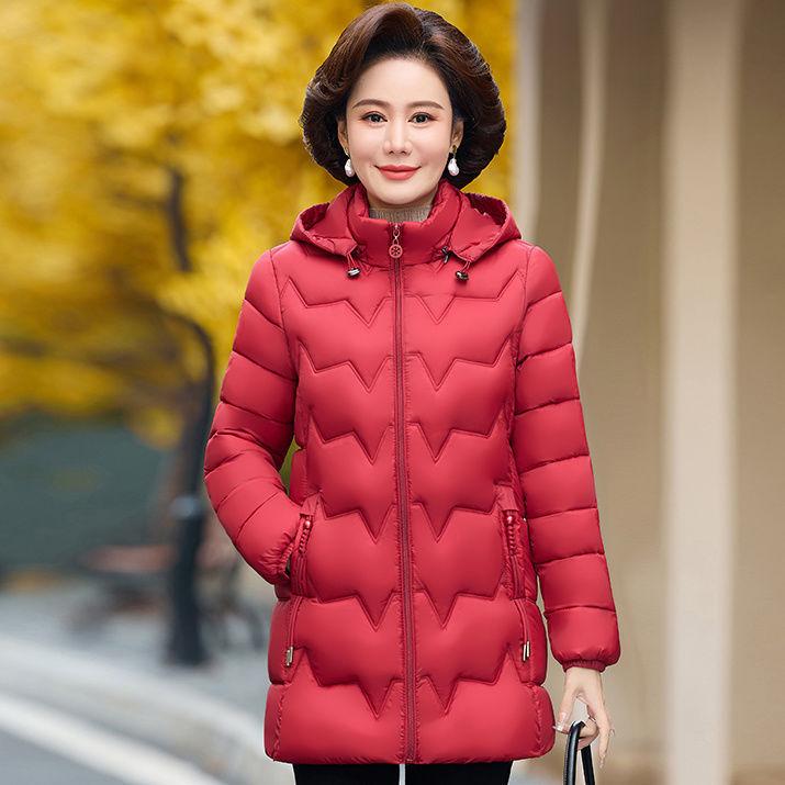 Abrigo acolchado de algodón de nuevo estilo 2024, abrigo acolchado de algodón de invierno para mujer, abrigo grueso y cálido de mediana edad, ajustado y a la moda para madres, abrigo acolchado de algodón de longitud media.