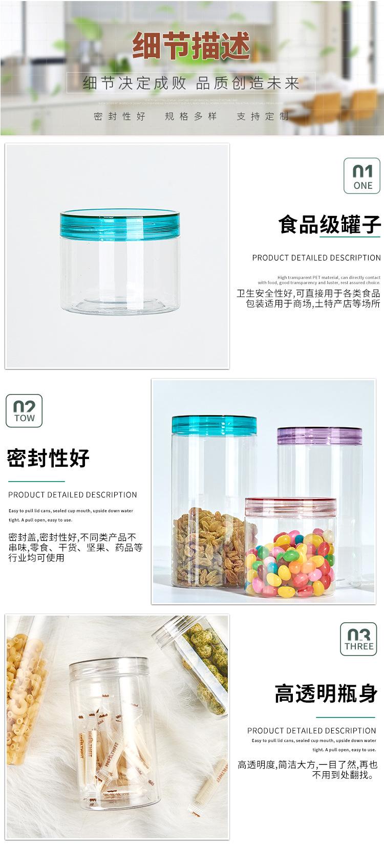 Tarro de plástico transparente para mascotas al por mayor, tarro para galletas, tarro perfumado para té y nueces, tarro sellado para alimentos, tarro de embalaje anual con tapa