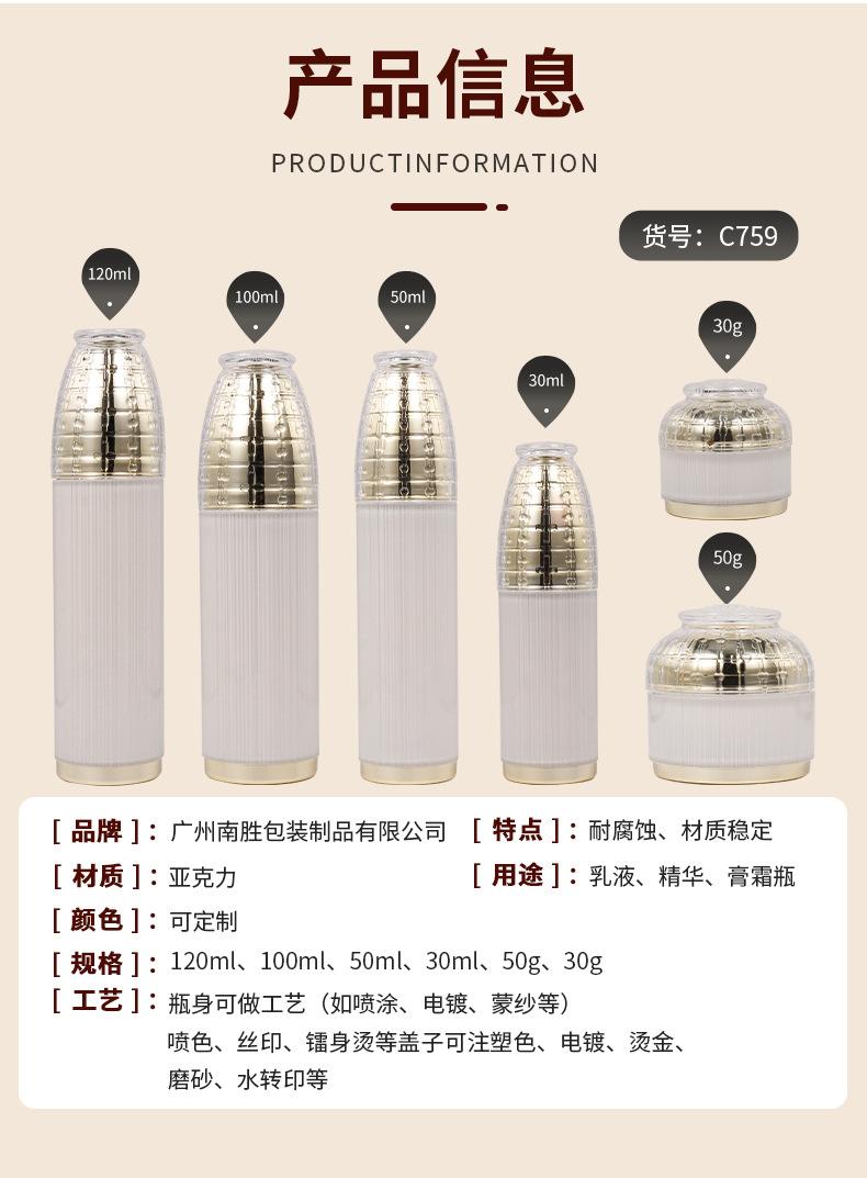 Botella de Crema Acrílica, Botella de Producto para el Cuidado de la Piel, Tapa Cepillada, Crema para Ojos, Botella de Crema Facial, Material de Empaque Cosmético, Botella de Loción con Presión