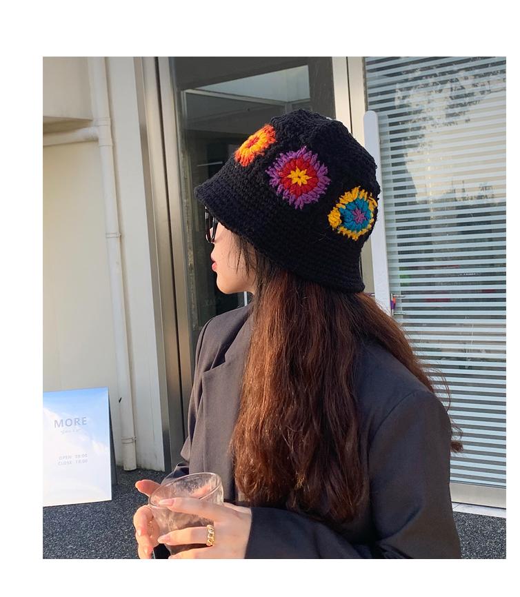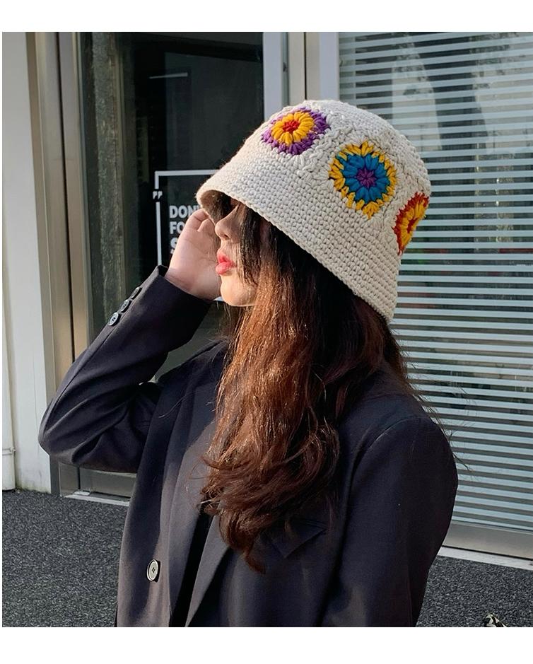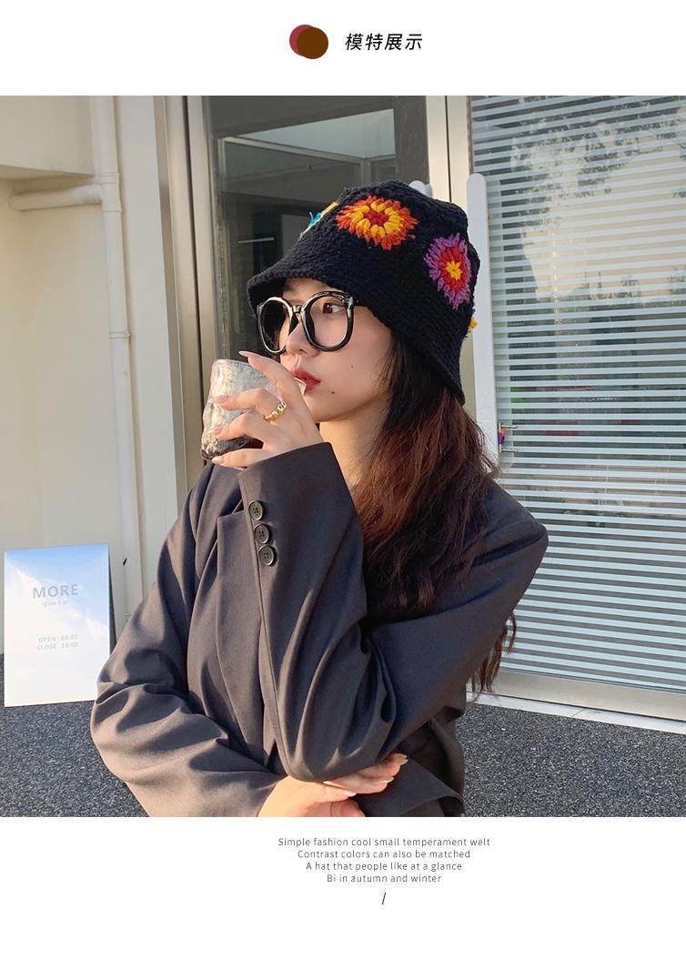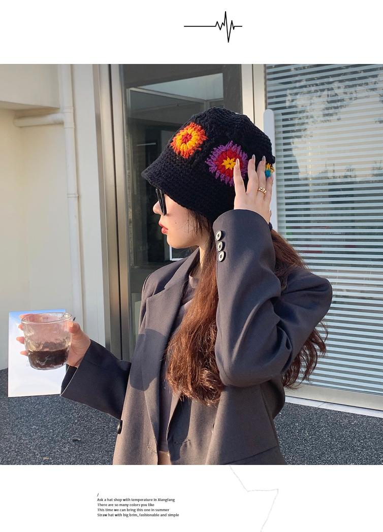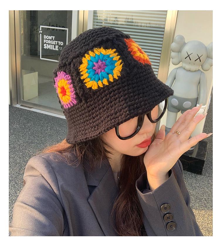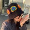 Sombrero de Lana Tejido a Crochet Hecho a Mano con Flor Negra para Niños Otoño e Invierno Combinable Sombrero de Pescador para Nicho Invierno Cálido Sombrero de Cubeta