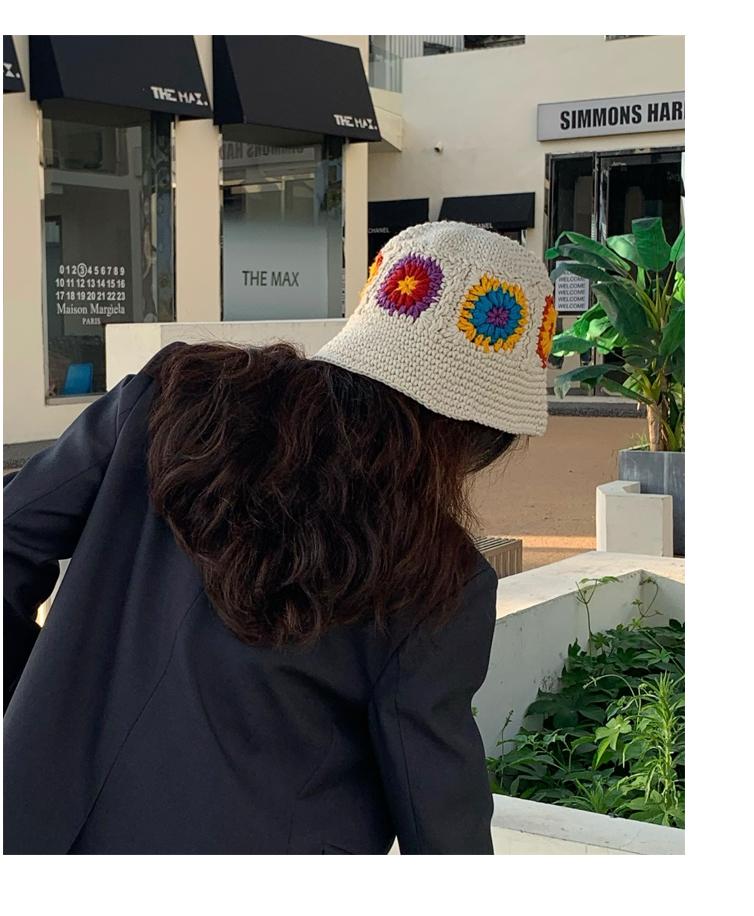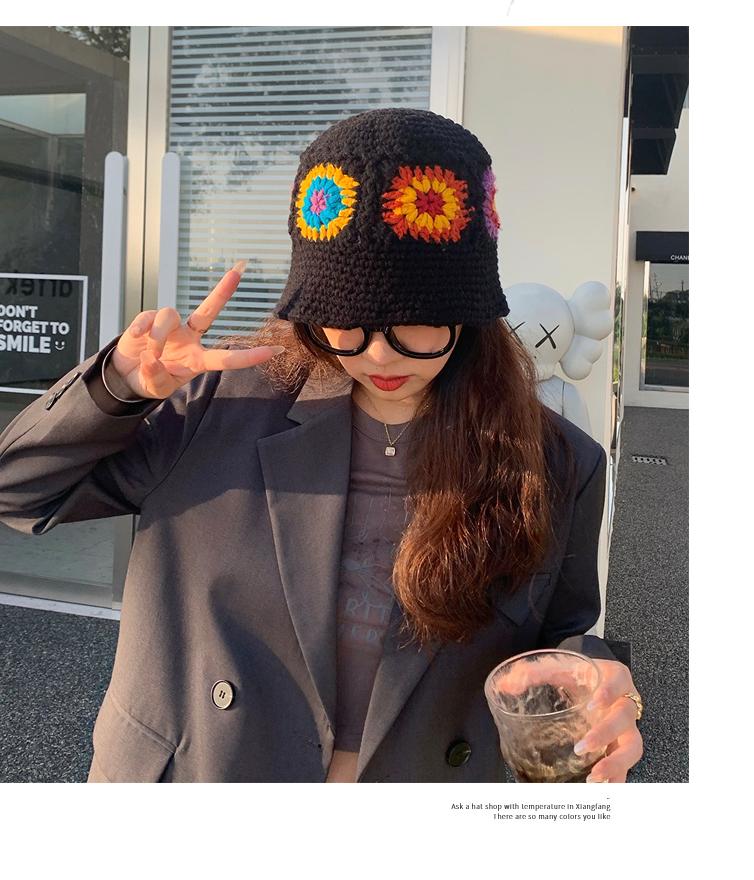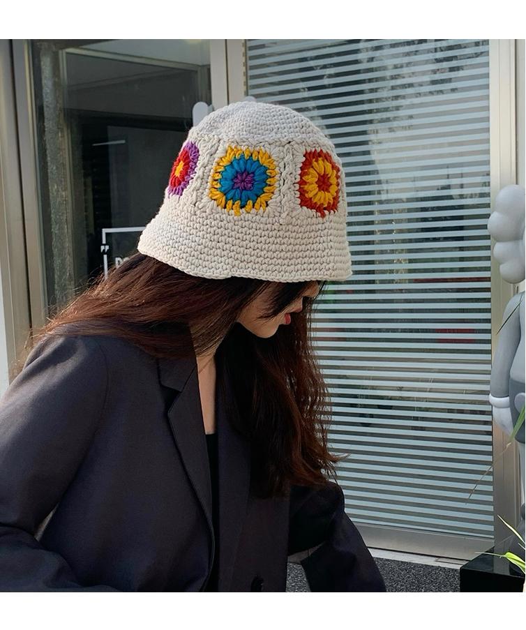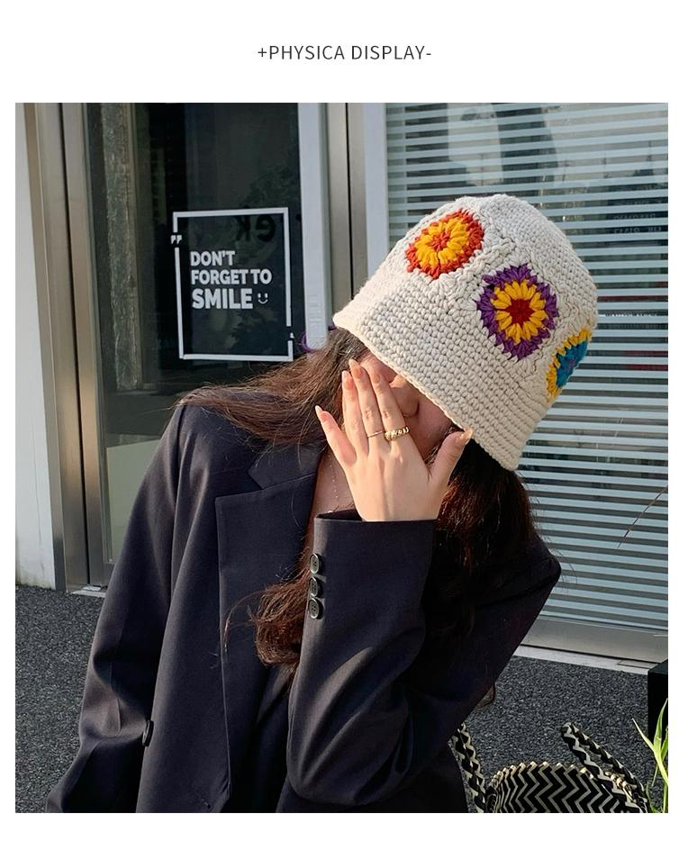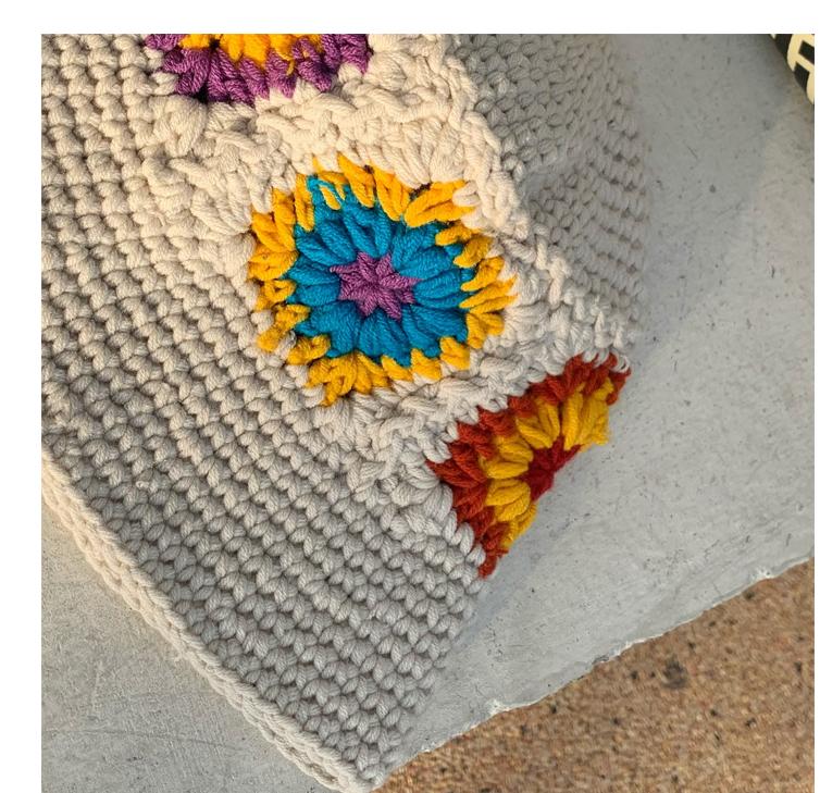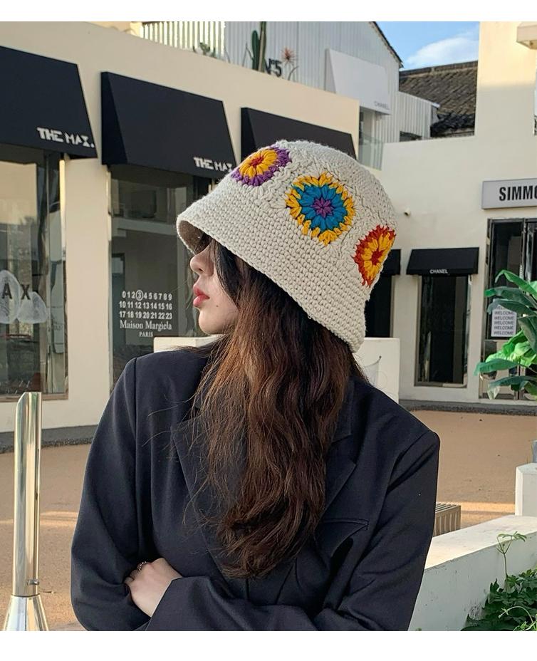 Sombrero de Lana Tejido a Crochet Hecho a Mano con Flor Negra para Niños Otoño e Invierno Combinable Sombrero de Pescador para Nicho Invierno Cálido Sombrero de Cubeta