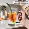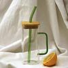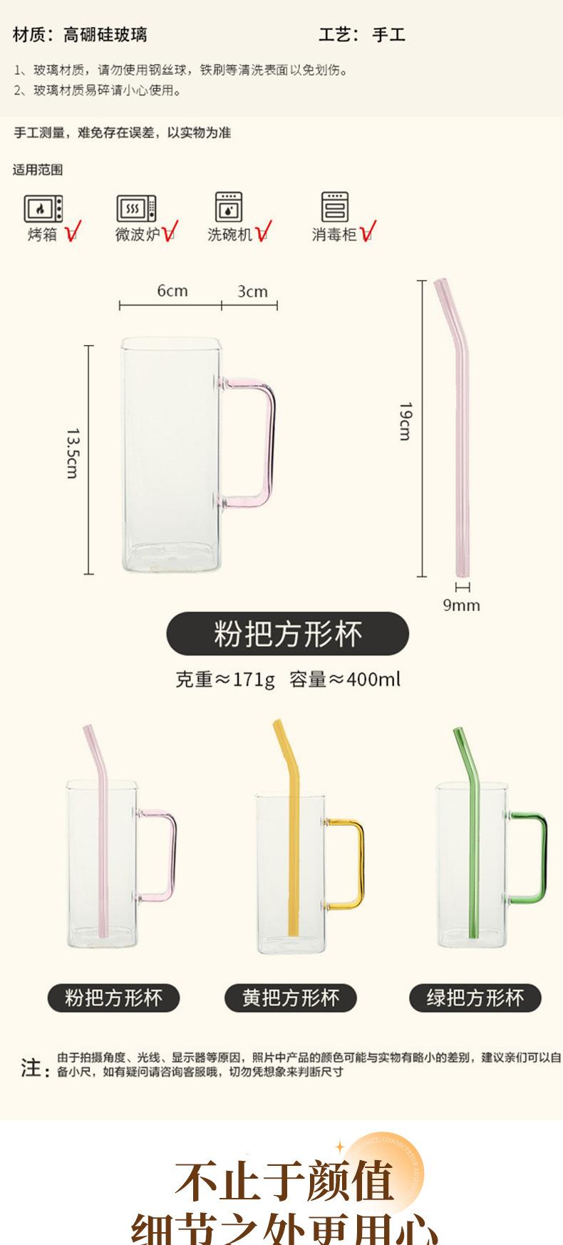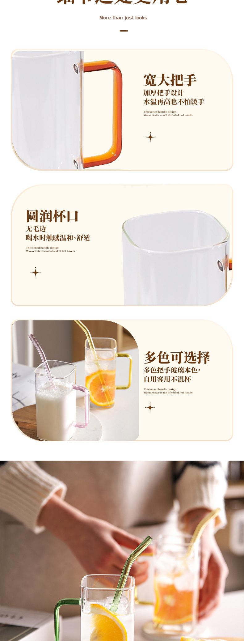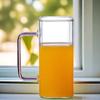 Vaso de Agua Cuadrado de Vidrio Juego para el Hogar Vaso para Beber de Aspecto Elegante con Pajita Vaso con Asa de Gran Capacidad Botella de Vidrio Botella