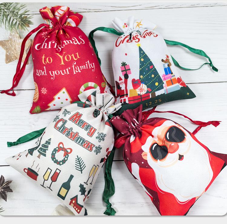 Nueva Navidad Poliéster Dibujos Animados Bolsillo con Cordón Fiesta Navideña Empaque de Dulces Bolsa de Regalo