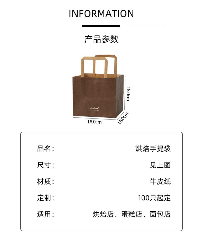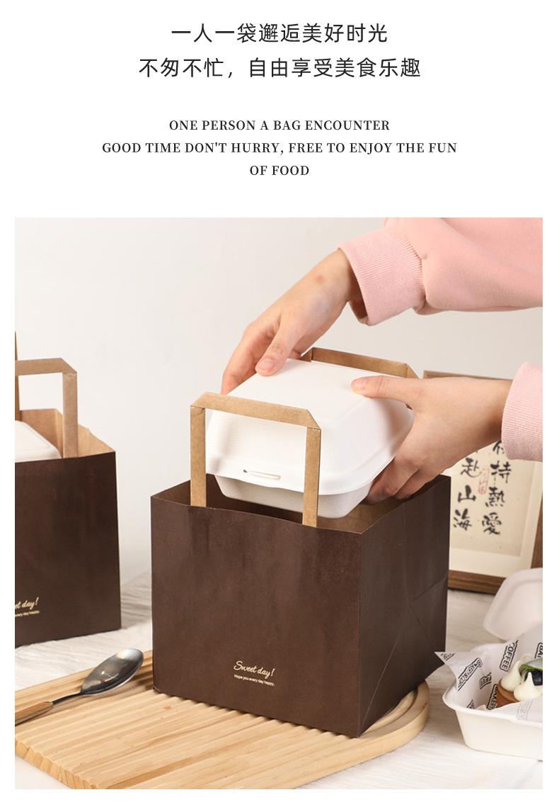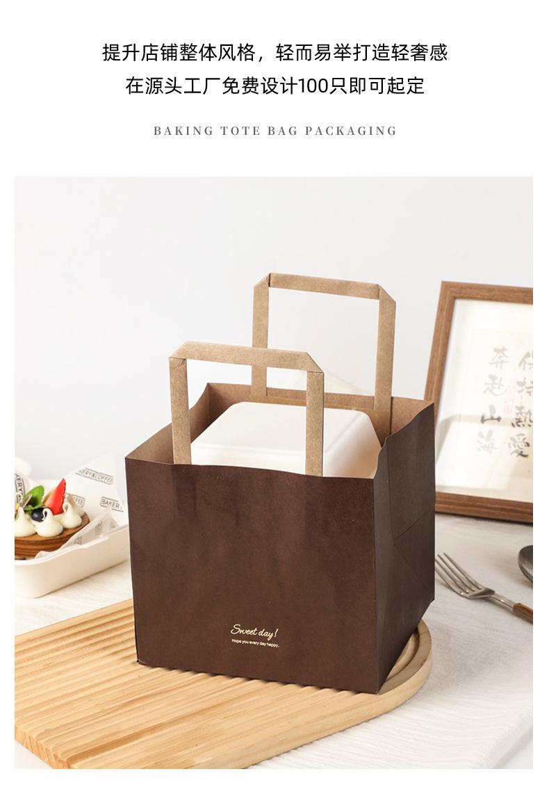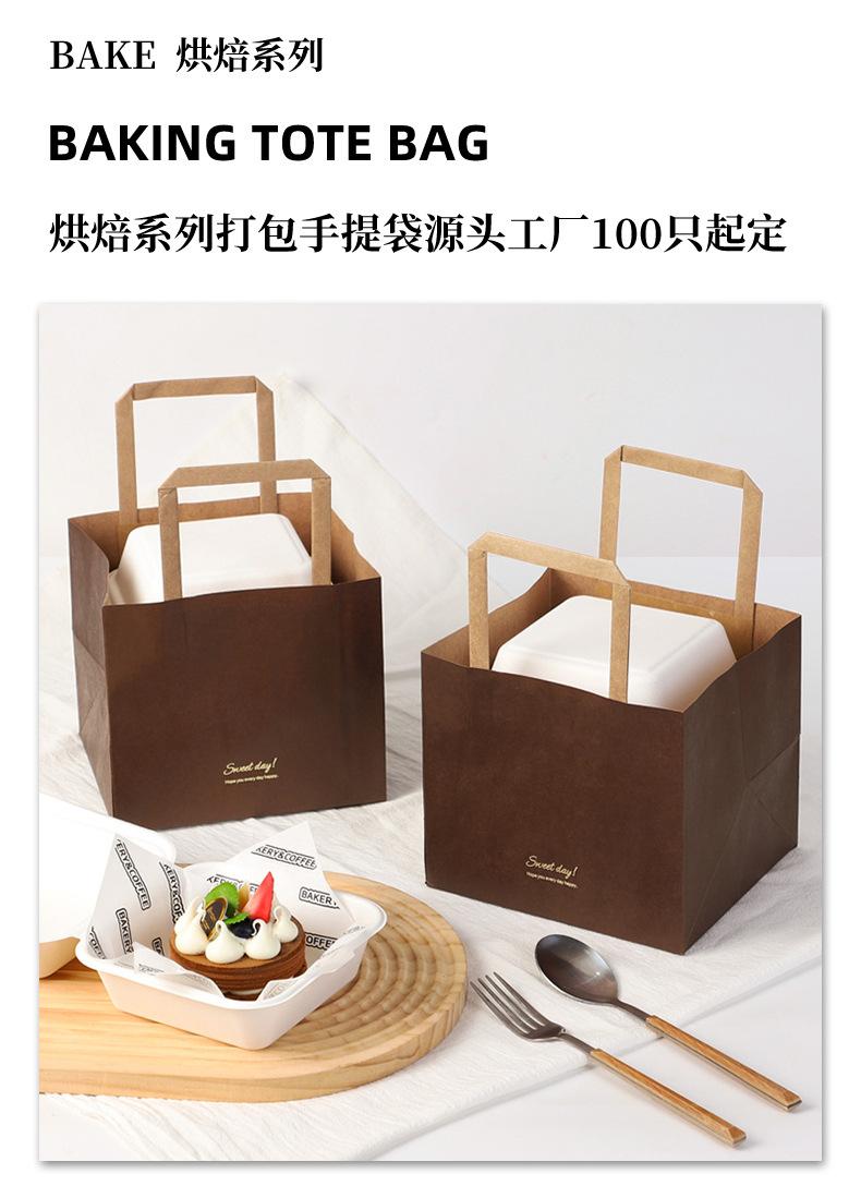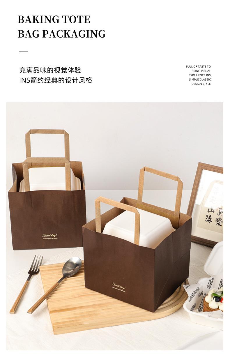 Bolsa de Papel Kraft Bolsa para Llevar Empaque Bolsa Tote para Almuerzo Pastel Tiramisú Bolsa de Empaque para Postre de Horneado