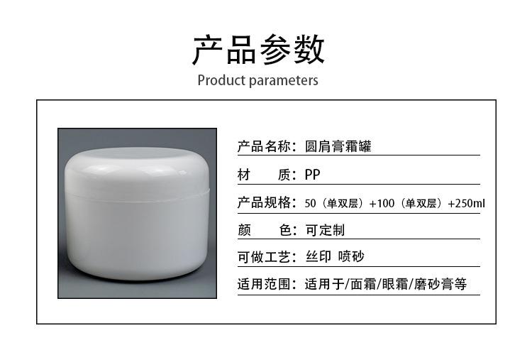 Frasco de crema PP de 50, 100 y 250 g, de una sola capa y doble capa, con hombro redondo, para el cuidado de la piel, crema, mascarilla, material de embalaje
