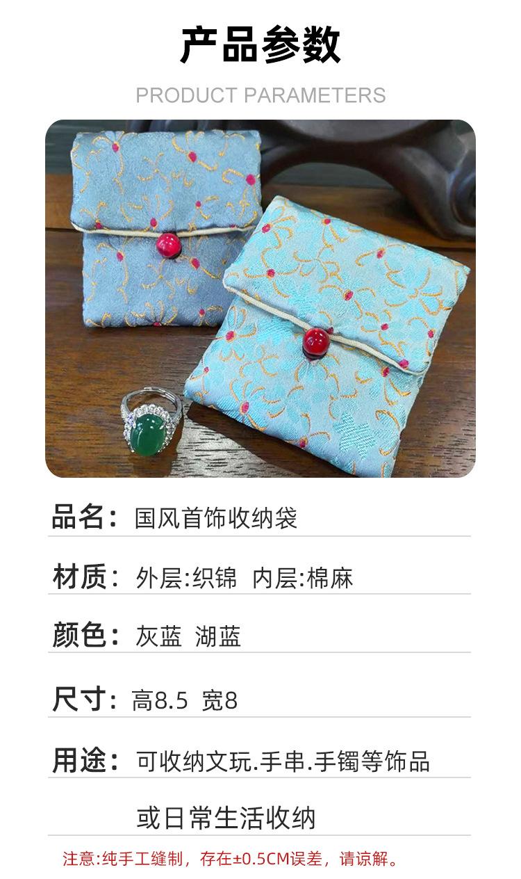 Bolsa de Almacenamiento de Joyería Gruesa de Alta Calidad Algodón Brocado Tapa Abatible Bolsa de Embalaje para Joyería Pulsera Juego Cultural