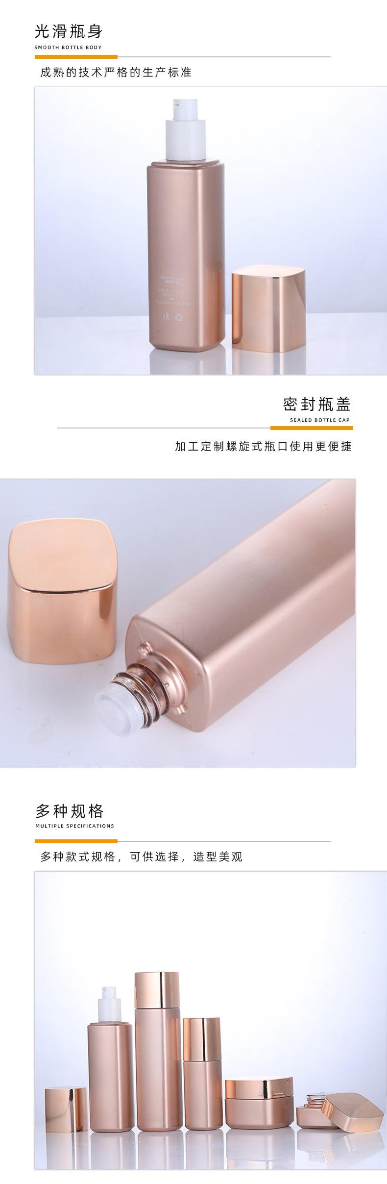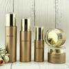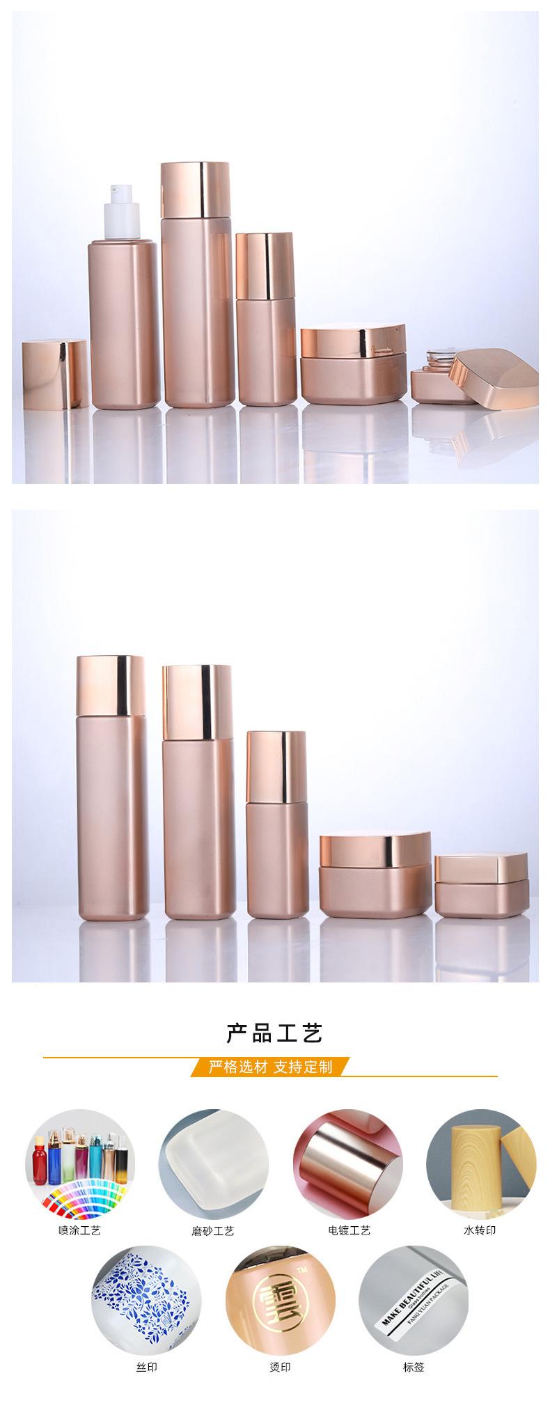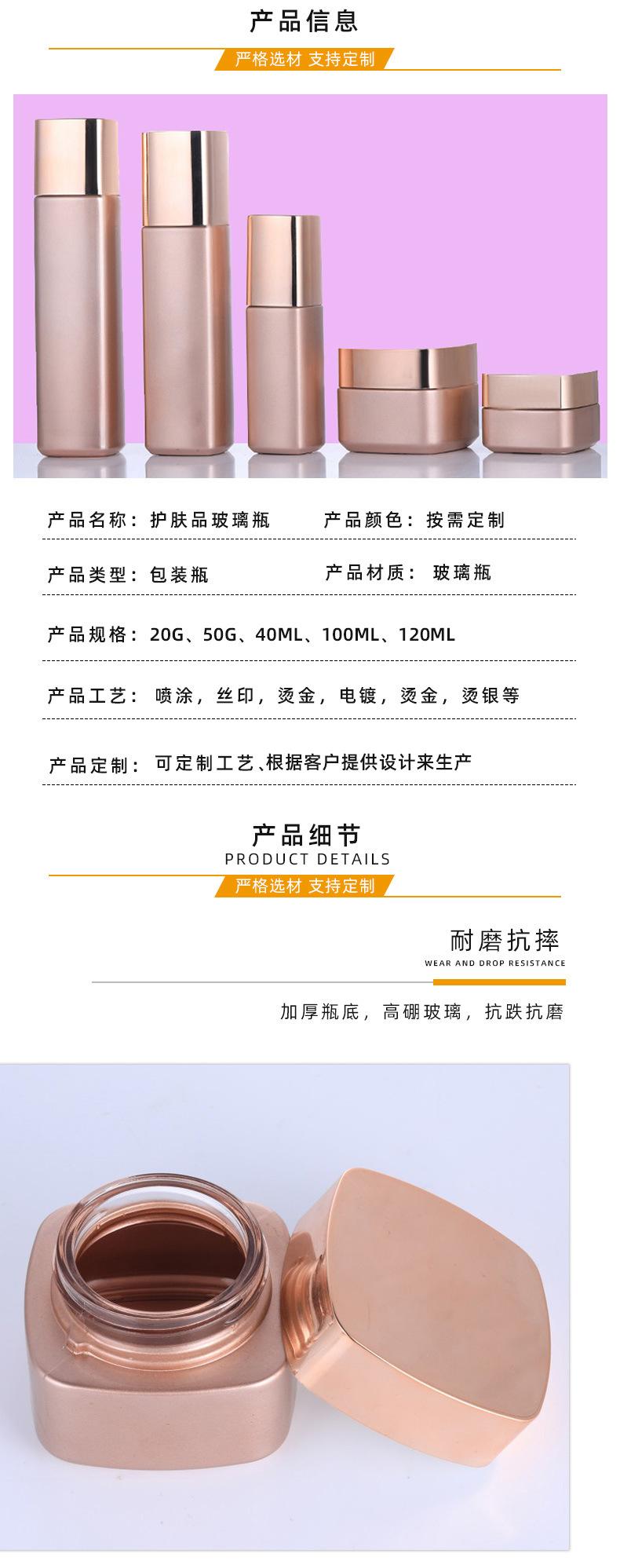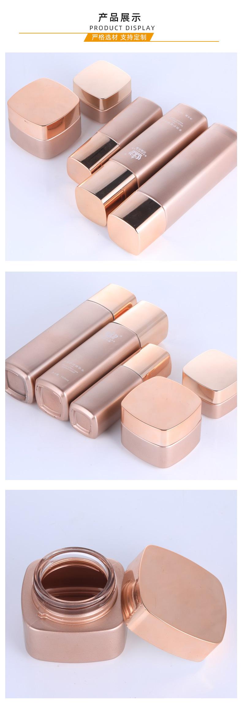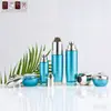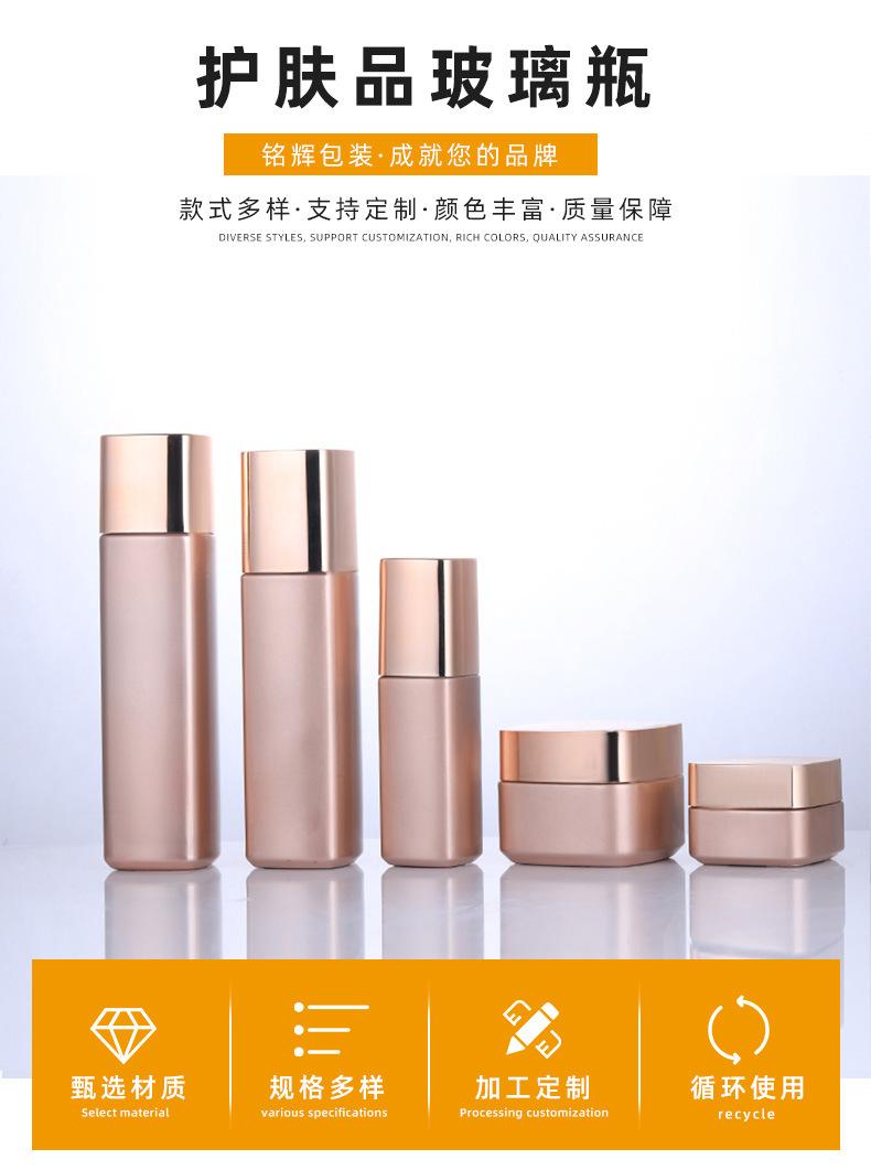 Cuarteto de envases cosméticos, botellas de vidrio para productos de cuidado de la piel, juego de botellas de vidrio, prensa para cremas, botellas de tónico.