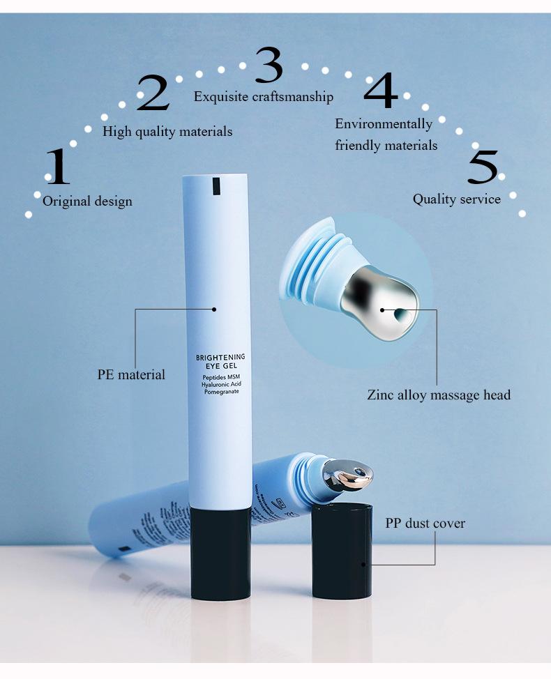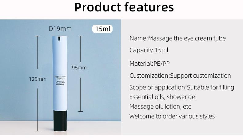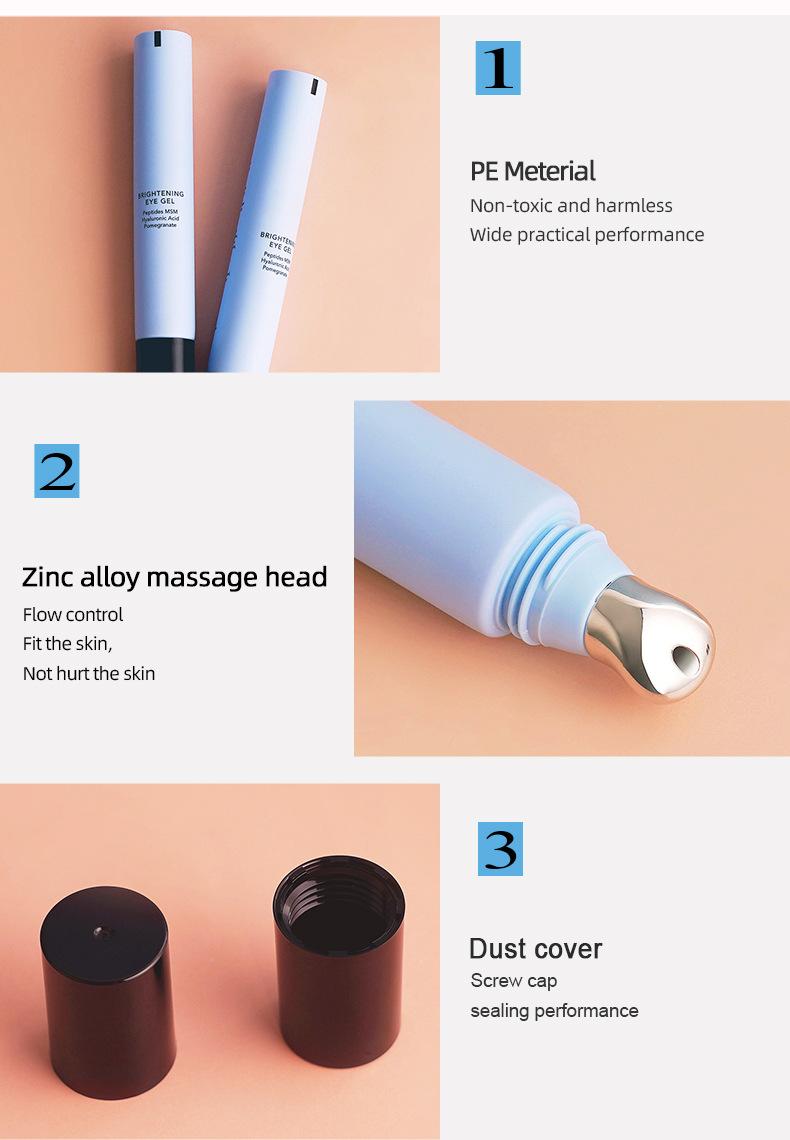 Tubo cosmético de 10 ml y 15 ml con boquilla oblicua, de aleación de zinc, para crema de ojos, con función de masaje, gel para crema de ojos, manguera de PE, material de embalaje.