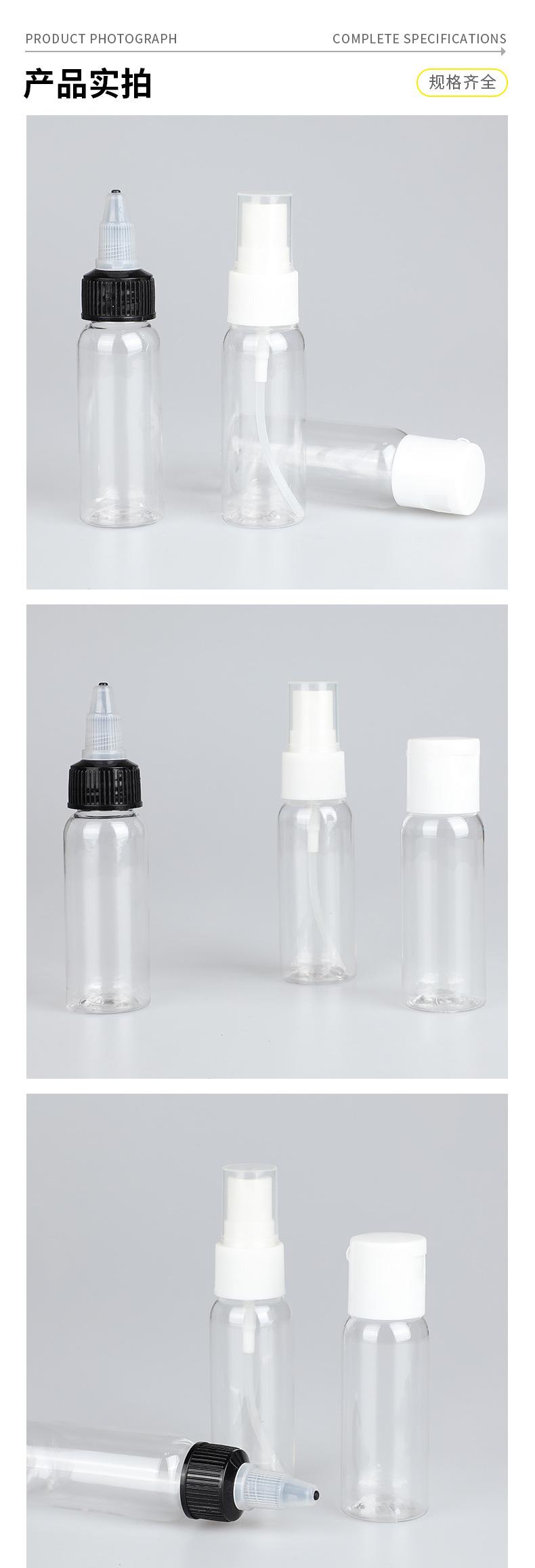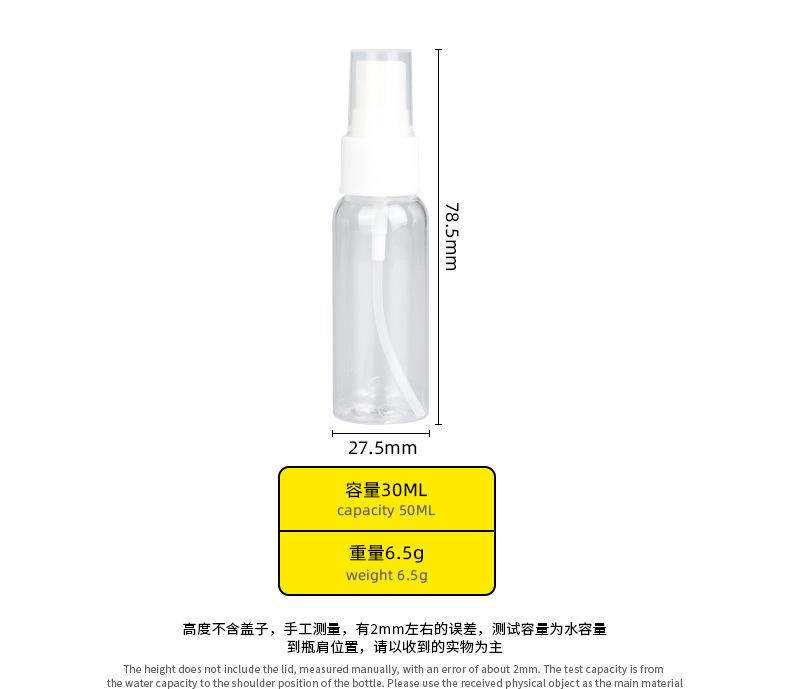 Venta al por mayor, botella con atomizador de 30 ml, pequeña regadera para mascotas, botella de perfume para maquillaje, botella transparente con punta abatible.