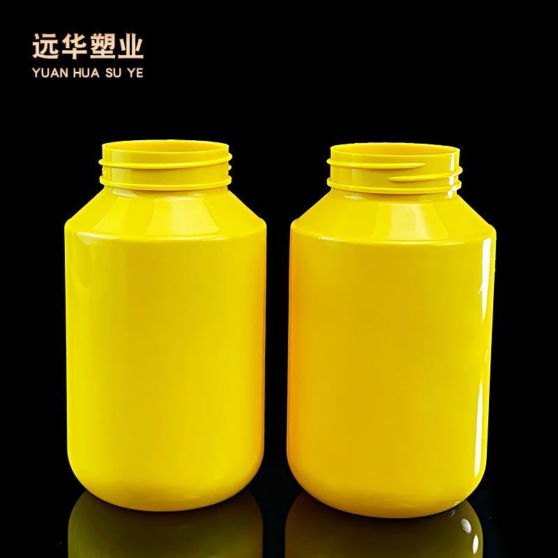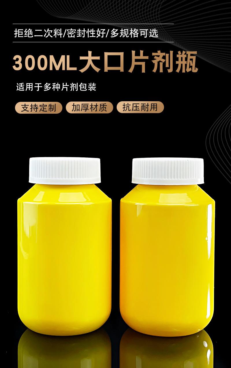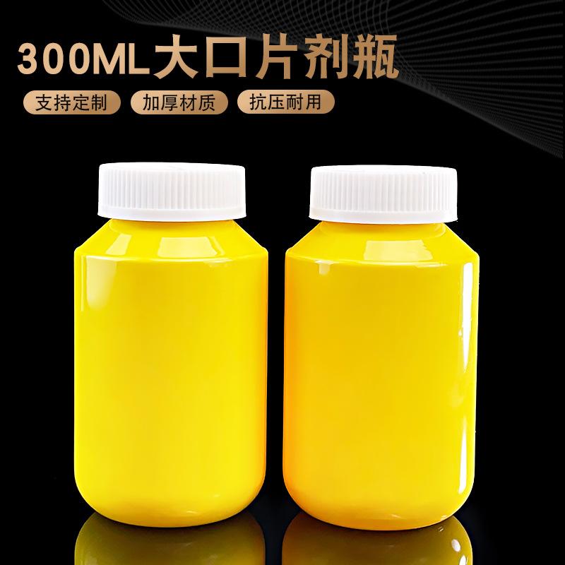 Fábrica en stock mayoreo 300ml tableta redonda gruesa sólida dividida botella de plástico vacía boca grande pet botella sellada