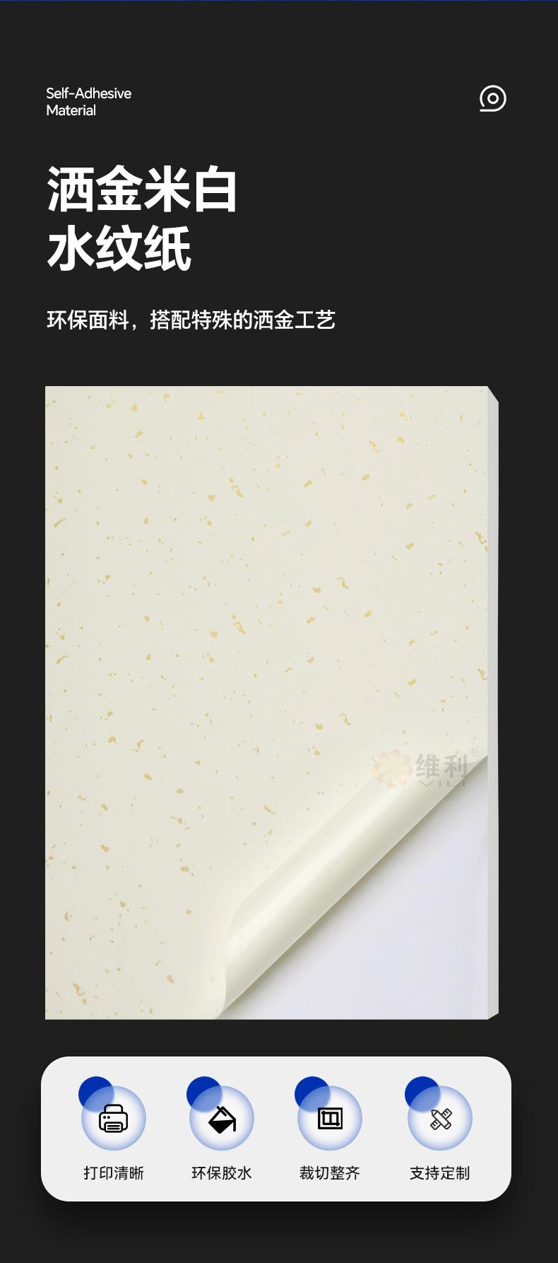 Papel A4 con Patrón de Agua Polvo Dorado Etiquetas Autoadhesivas Personalizadas Pequeña Lote Etiquetas para Té con Logotipo Polvo Dorado
