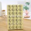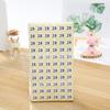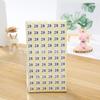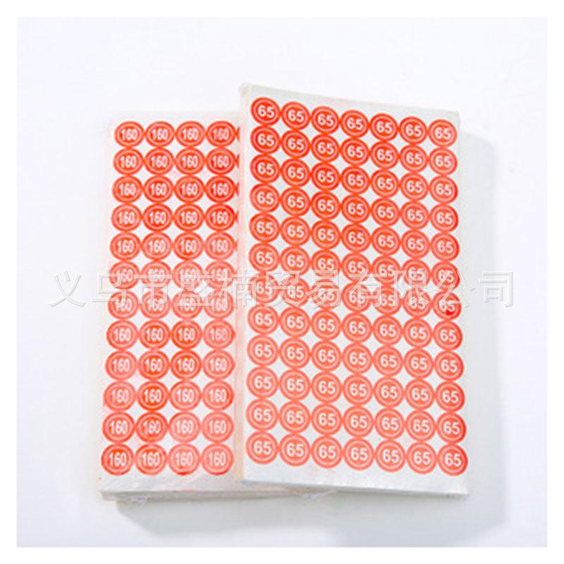 Cada número del 1 al 60 está marcado, y los números posteriores al 60 están marcados con un 5. Los números y tamaños están marcados con letras blancas sobre fondo rojo. Cada libro contiene 62 hojas y 84 etiquetas pequeñas en cada hoja.