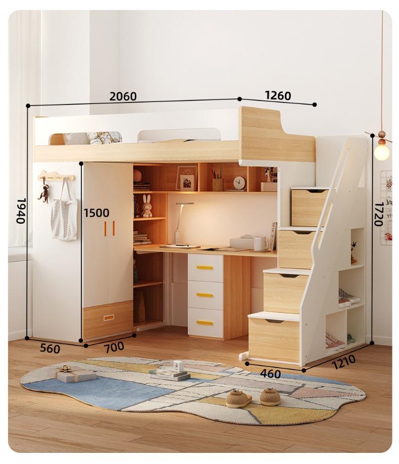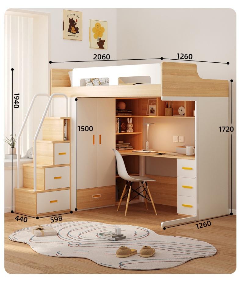 Cama Combinada de Estudio que Ahorra Espacio para Apartamento Pequeño Mesa de Estudio Cama Alta Tatami para Niñas Niños