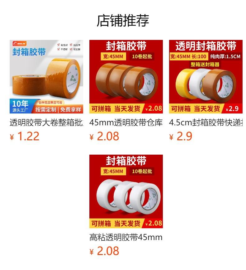 Width 60mm*1.8 thickness*120 (30 rolls per box), Width 45mm*2.5 thickness*200 (36 rolls per box), Width 55mm*2...