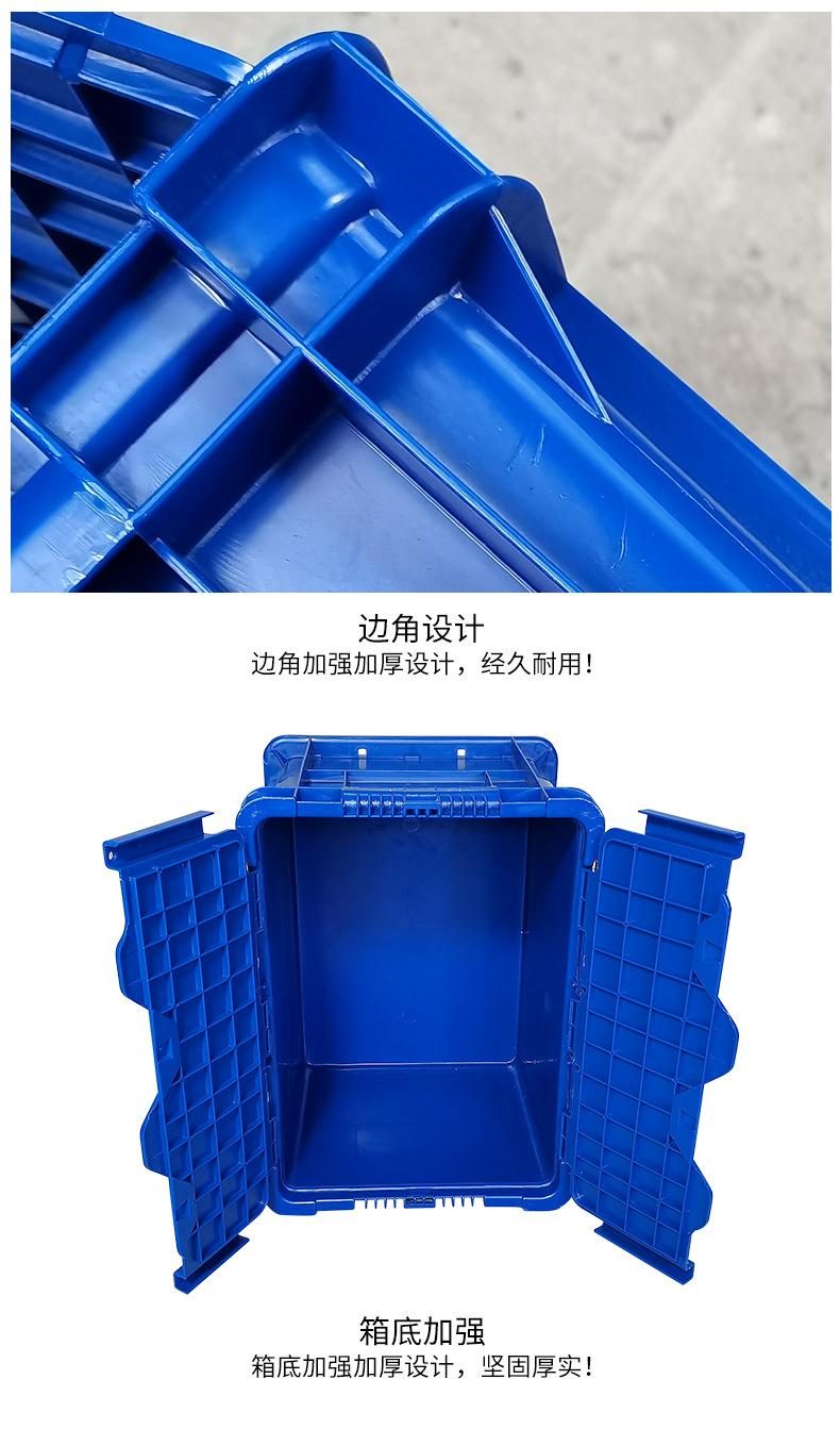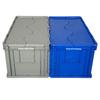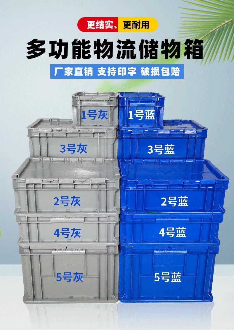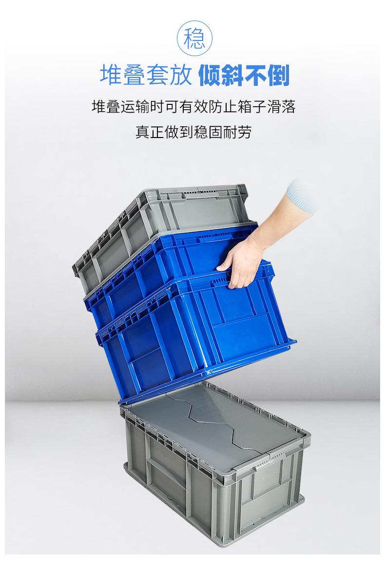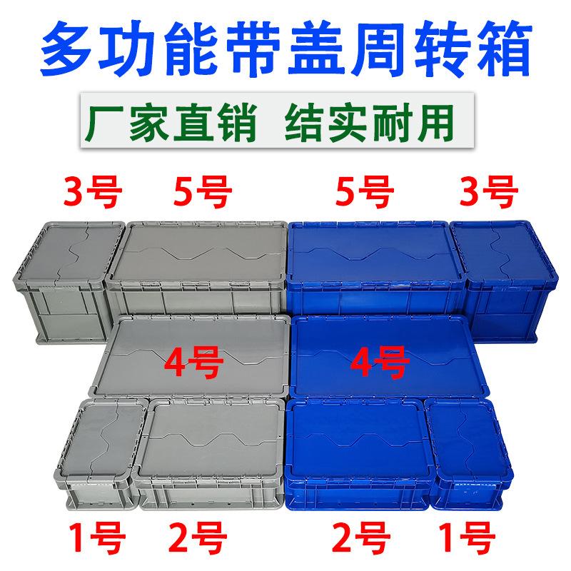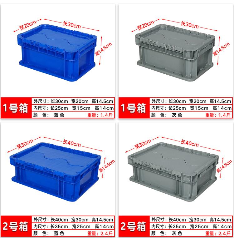 Caja de plástico engrosada con tapa para volteo, cesta de goma para transporte de materiales, caja rectangular gris con inserción oblicua.