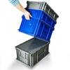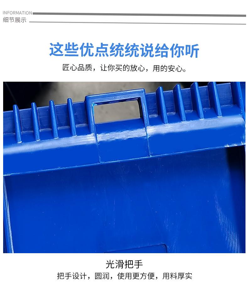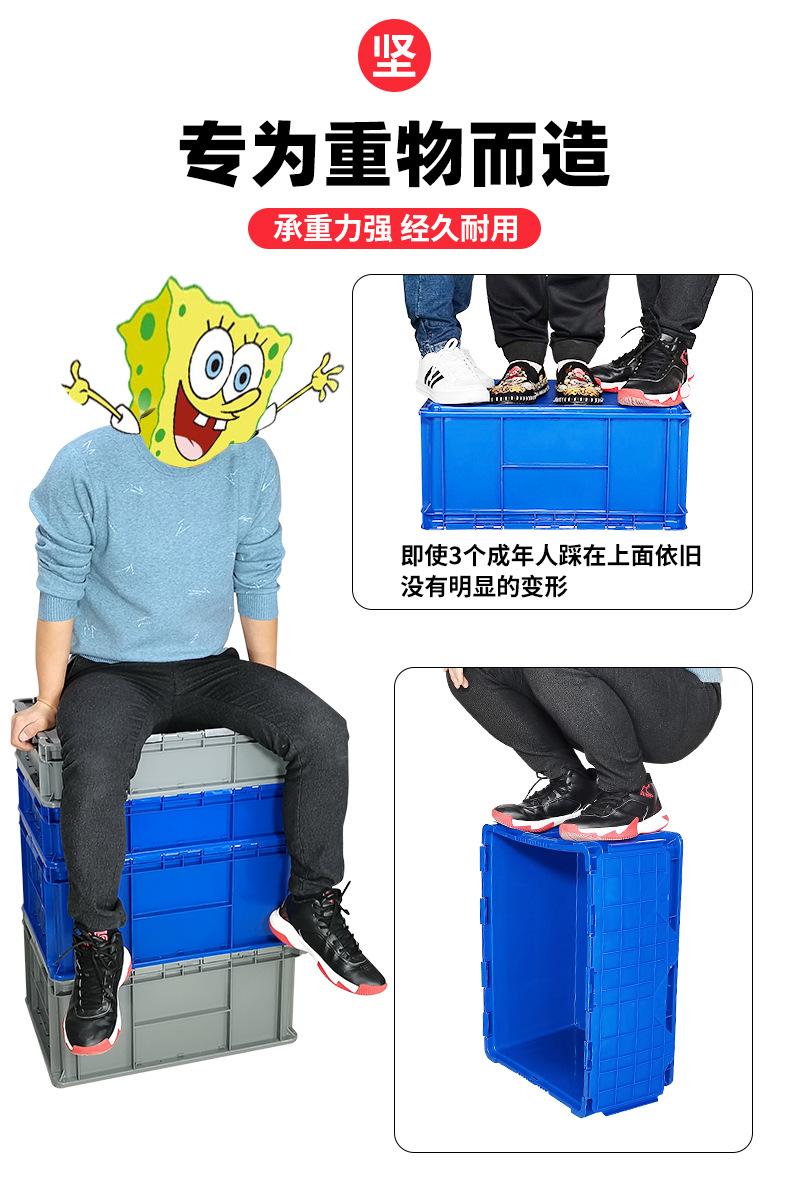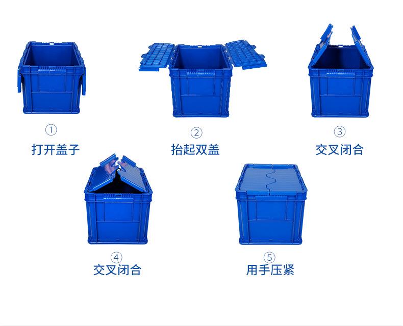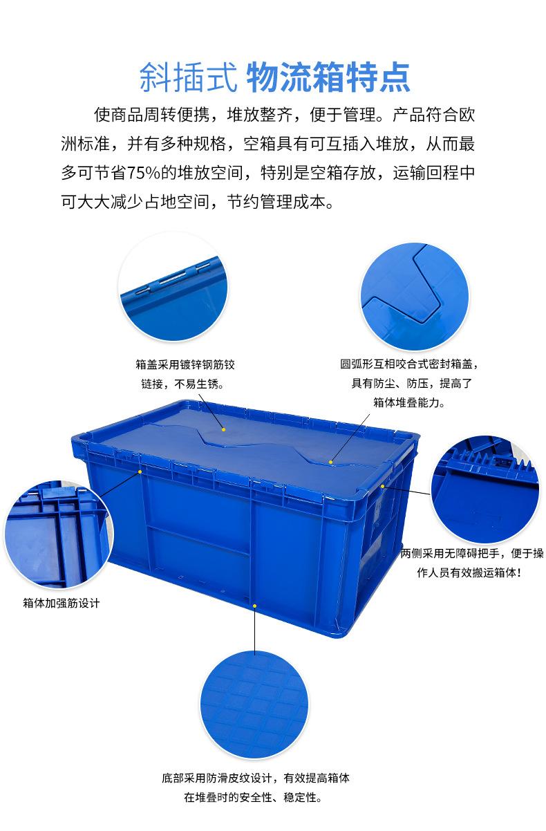 Caja de plástico engrosada con tapa para volteo, cesta de goma para transporte de materiales, caja rectangular gris con inserción oblicua.