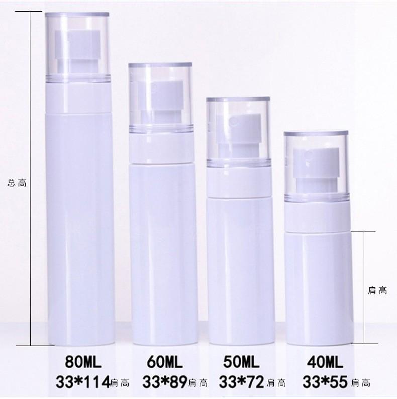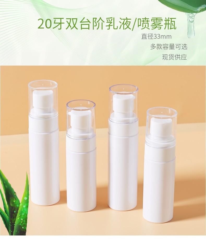 Fábrica en stock blanco 50ml botella de spray de doble paso botella de emulsión de presión de plástico PET sub-embotellado cosmético
