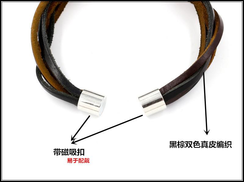 | Nombre: Pulsera de cuero trenzado bicolor Artesanía: Puramente hecho a mano Color: color de la imagen Tamaño: unos 21 cm de largo. Peso: unos 9 gramos Embalaje: Bolsa opp individual, 12 piezas en una bolsa opp grande ------------------------------------------------------------------------------------------------------- Debido a los diferentes métodos de medición, habrá ligeras diferencias en tamaño y peso, lo que no es un problema de calidad del producto. |