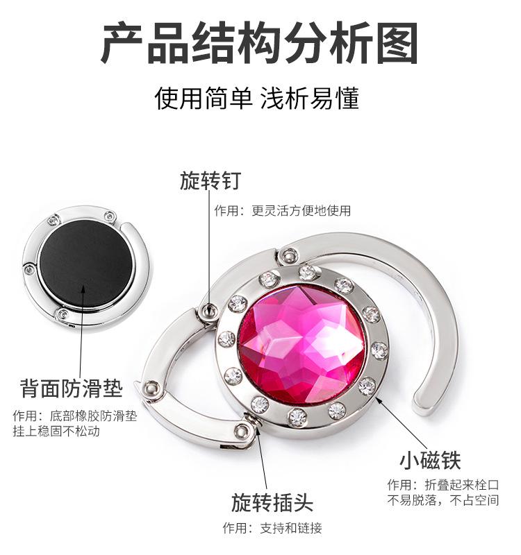 Colgador de Bolsos de Cristal Plegable Portátil y Práctico, Juego de Gancho para Bolsos de Mesa con 12 Gancho Metálico para Bolsos con Taladro