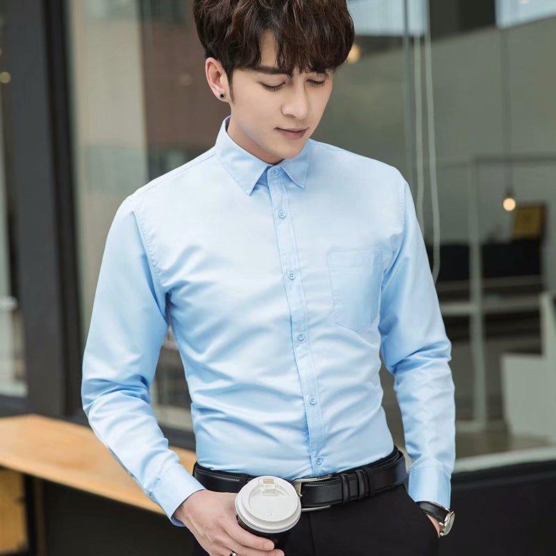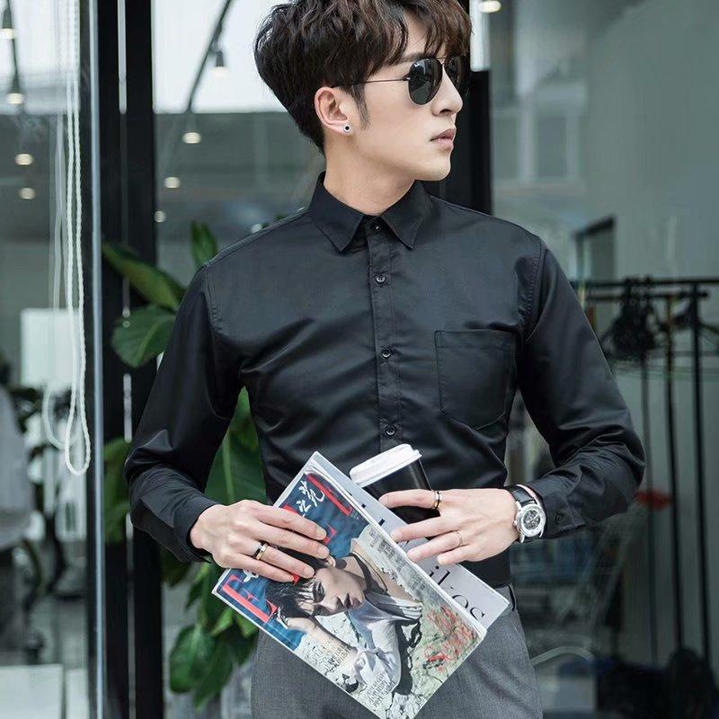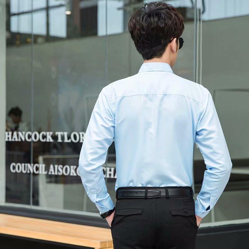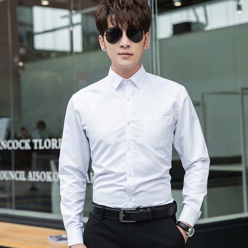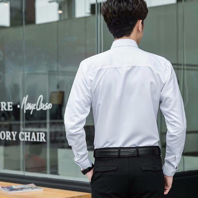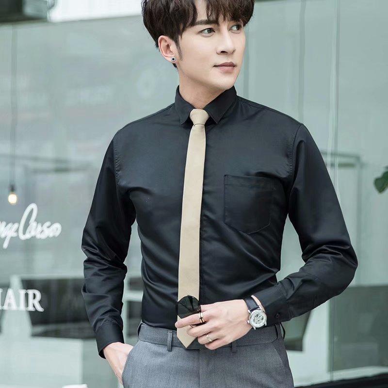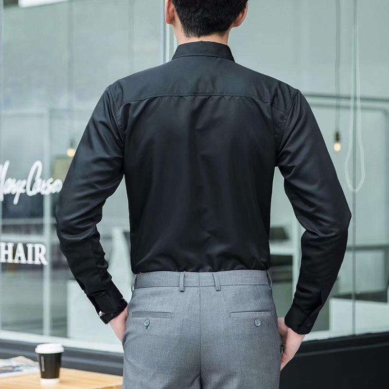 Camisa blanca Four Seasons de manga larga para hombre, ropa formal de negocios, camisa negra ajustada profesional, camiseta interior de color sólido para padrino coreano