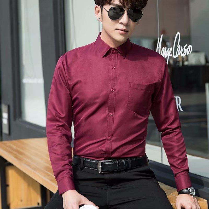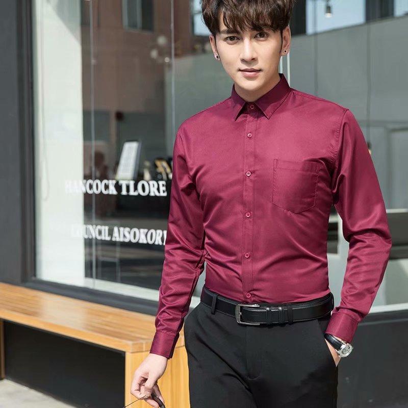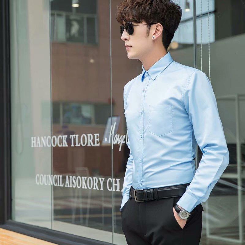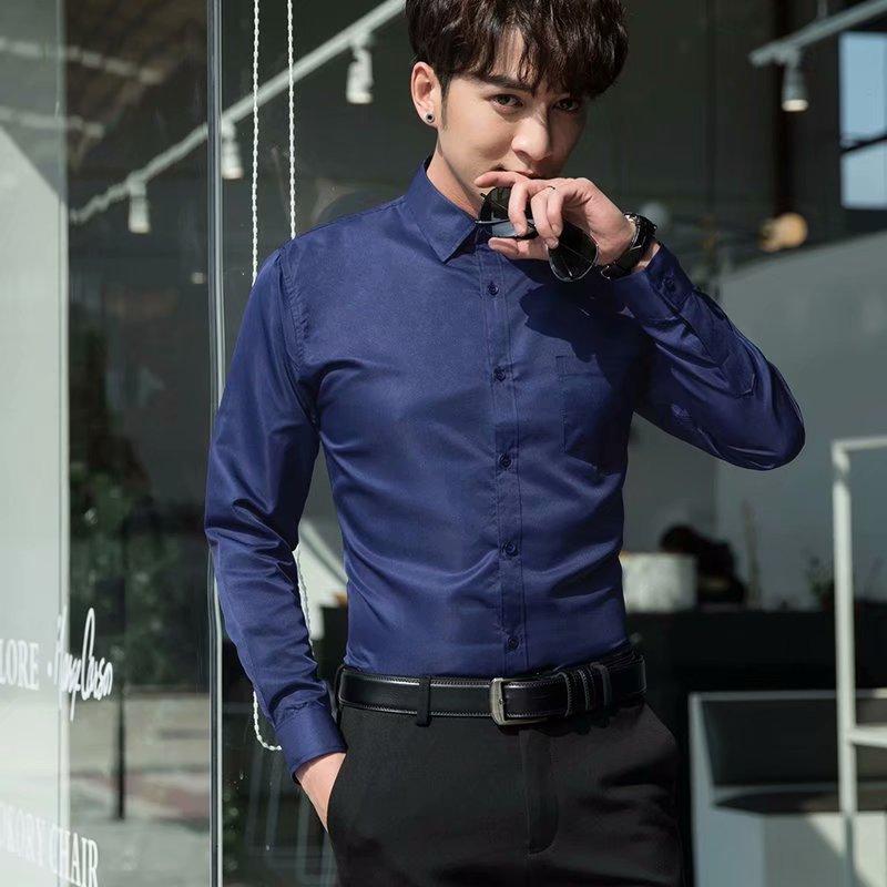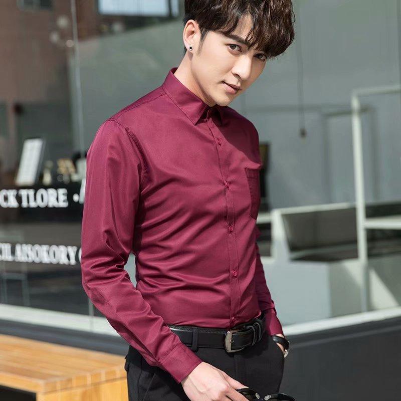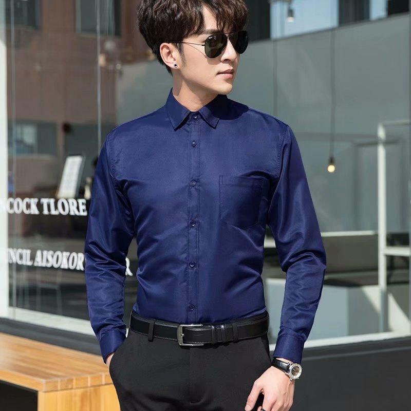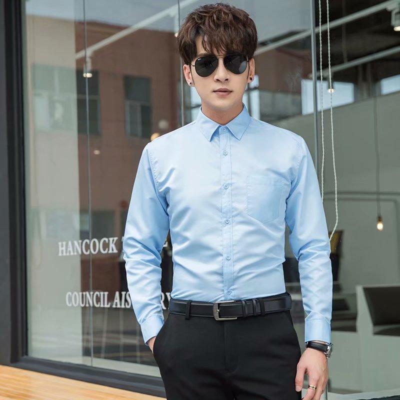 Camisa blanca Four Seasons de manga larga para hombre, ropa formal de negocios, camisa negra ajustada profesional, camiseta interior de color sólido para padrino coreano