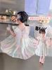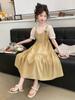 Vestido de Verano para Niñas 2025 Nuevo Vestido Elegante de Dos Piezas Falsas para Niña Vestido de Tirantes para Niños Vestido de Princesa de Verano