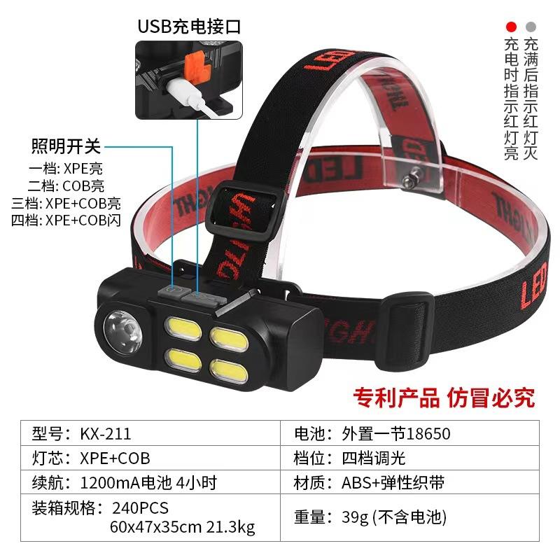 Nuevo faro KX211, luz potente, carga, faro superbrillante, pesca nocturna, COB, inundación, iluminación LED para exteriores