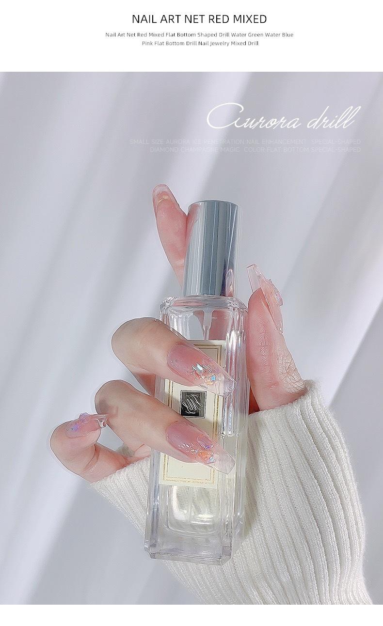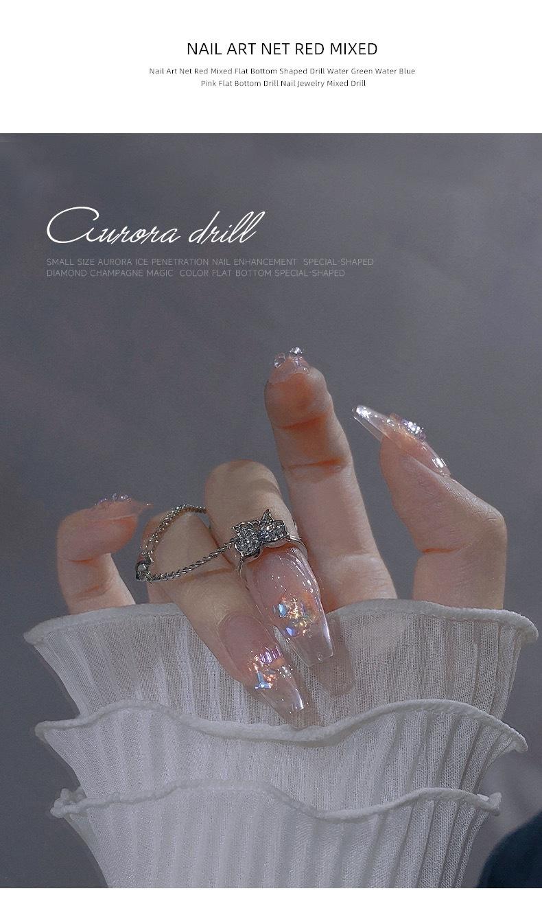 Taladro Aurora para decoración de uñas, tamaño pequeño, taladro de gelatina de hielo, superflash, temperatura, elfo, colores mixtos, transparente, diamante, joyería para decoración de uñas